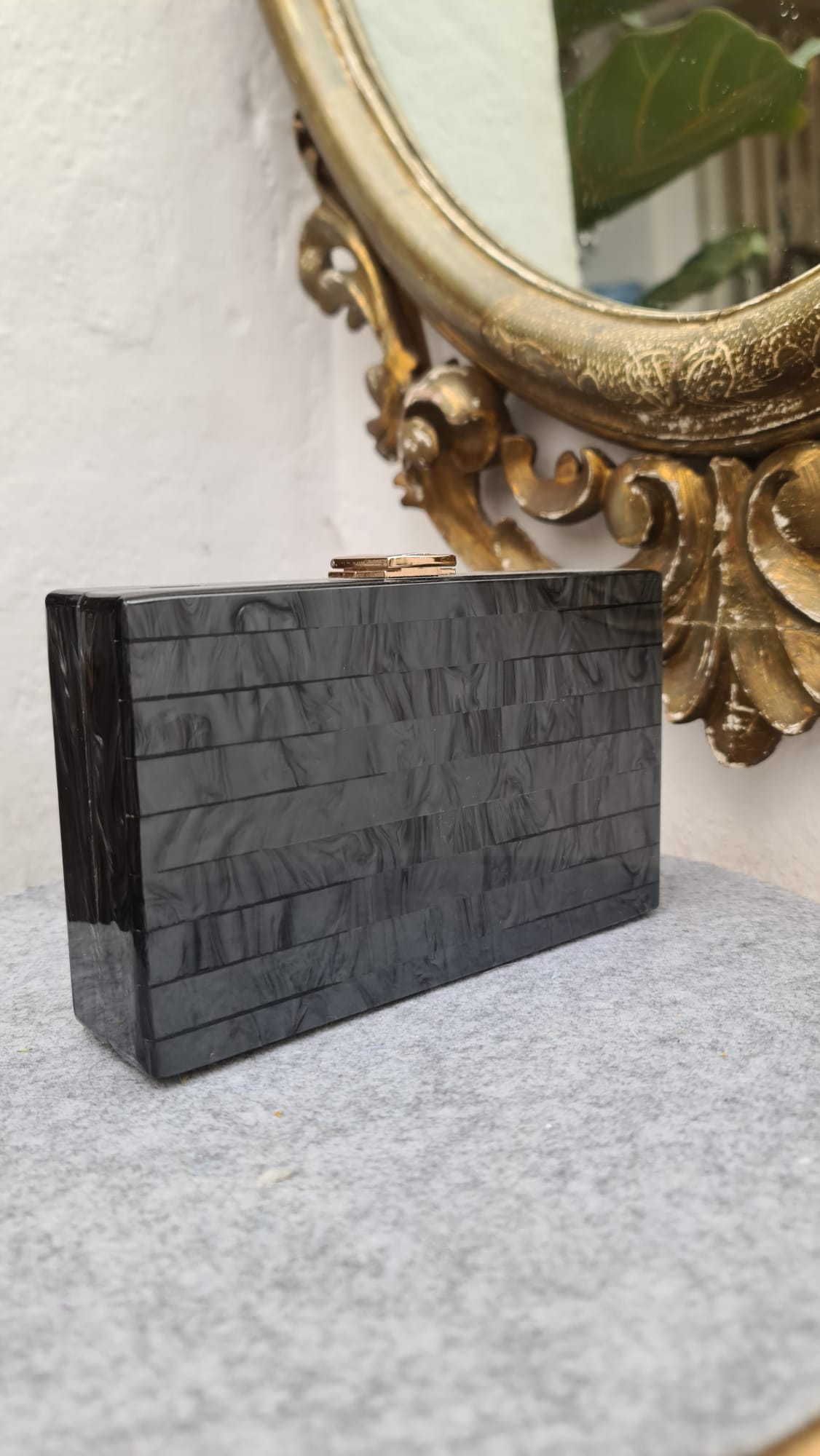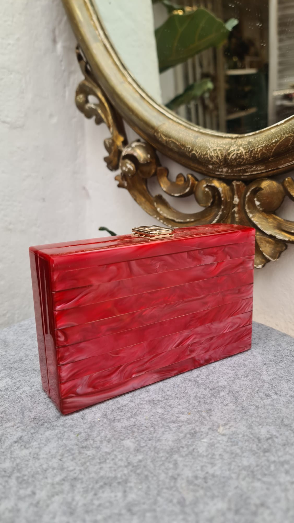 Clutch style party bag that can be carried either by hand or shoulder thanks to its chain shoulder strap. As you can see, it can be worn with any look, giving it a touch of elegance and delicacy.