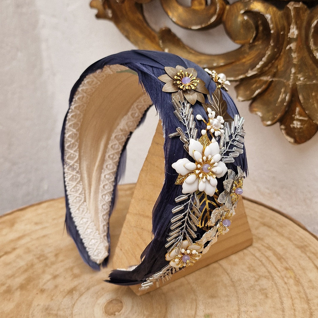 Like all our designs, this headband can be fully customized to your liking. We have infinite types and colors of feathers and jewel pieces, so do not hesitate to ask us for a design uniquely yours.