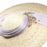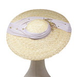 Discover our exclusive hat with unique charm, adorned with an elegant sinamay bow and a dazzling jewel. This handmade hat is the perfect accessory to enhance your style on special occasions. The high-quality sinamay gives it a touch of class, while the lace adds a classic and sophisticated charm. The sparkling jewel in the center adds a touch of extra glamor and sophistication. Make a statement of elegance with this exquisite hat and become the center of attention at any event!