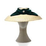 Pamela hat in beige tones with a velvet bow decoration and star-shaped jewel detail, perfect to be worn at upcoming fall/winter events.