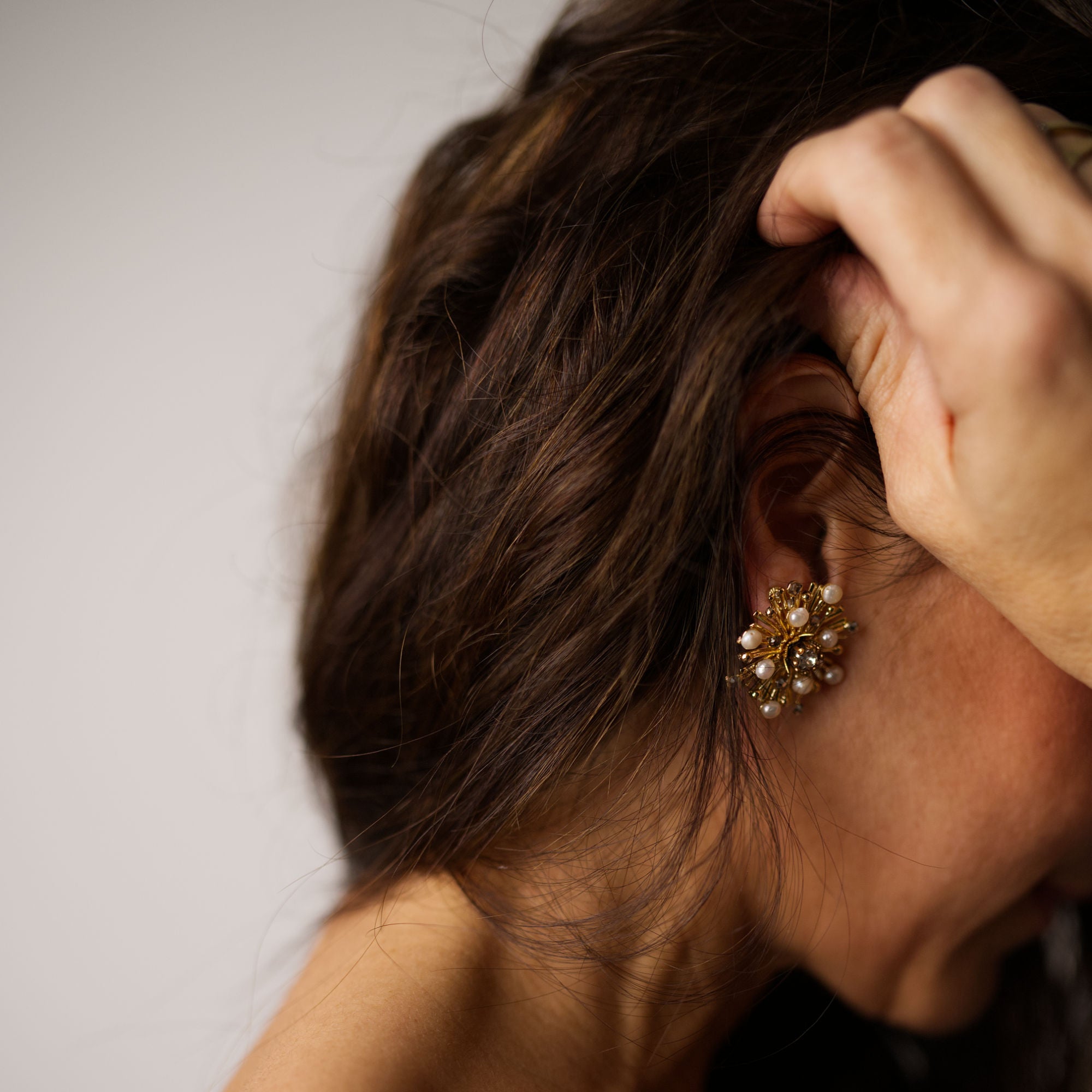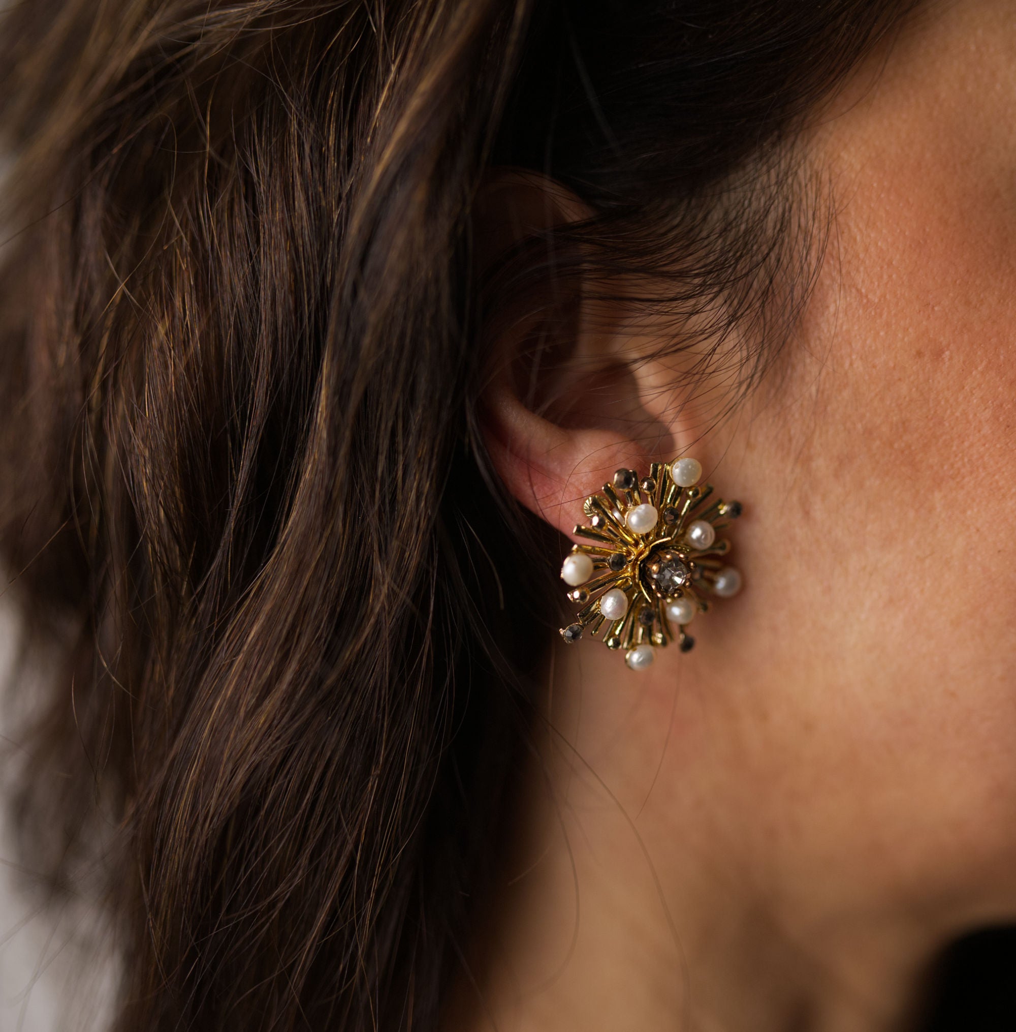 These earrings are created by hand, through the manipulation and composition of pieces of jewelry, giving life to a beautiful star. Each pair of earrings is made with care and skill, guaranteeing a unique and high-quality piece.