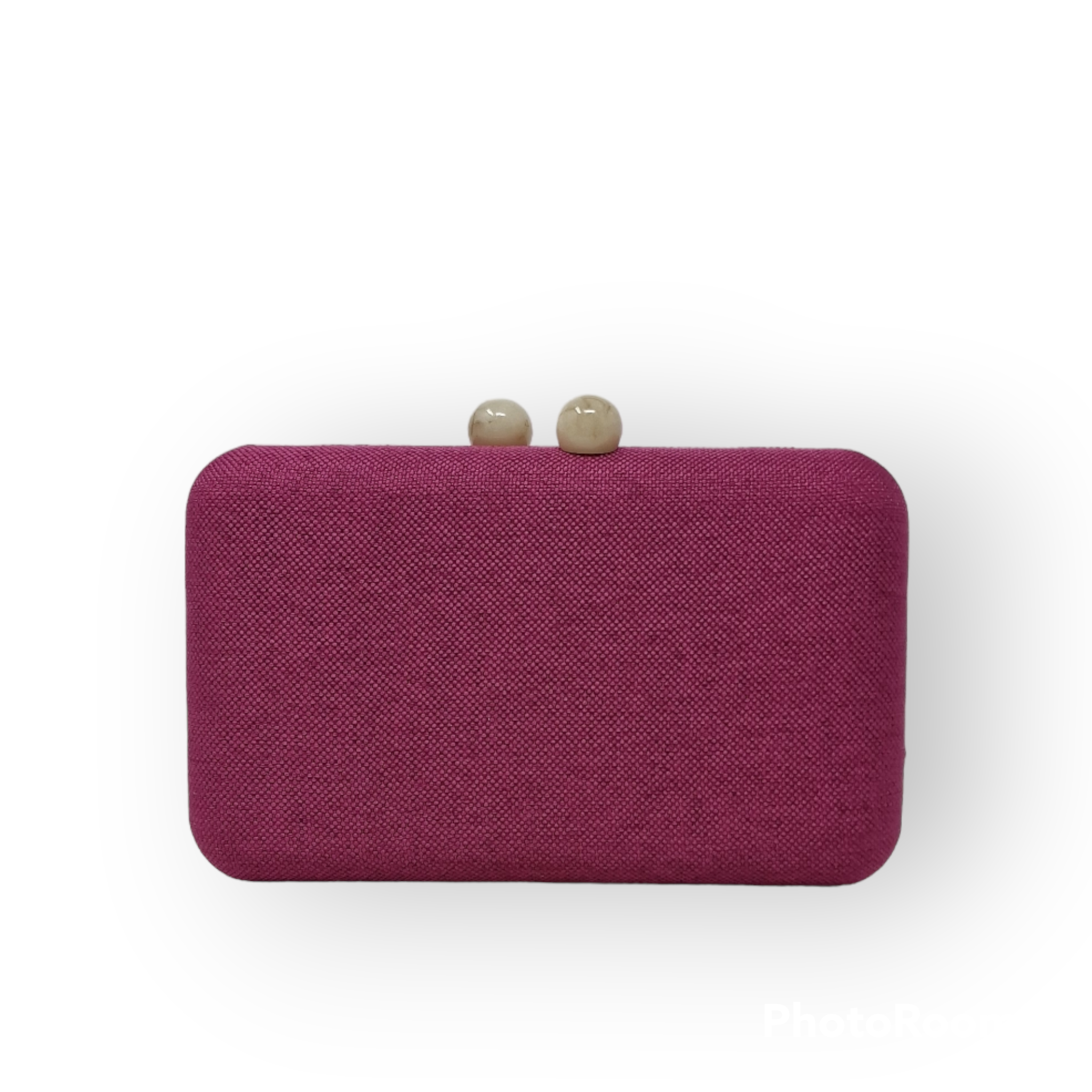 Bolso de fiesta con acabado de tela y cierre de iman y bandolera de cadena en el interior.