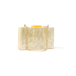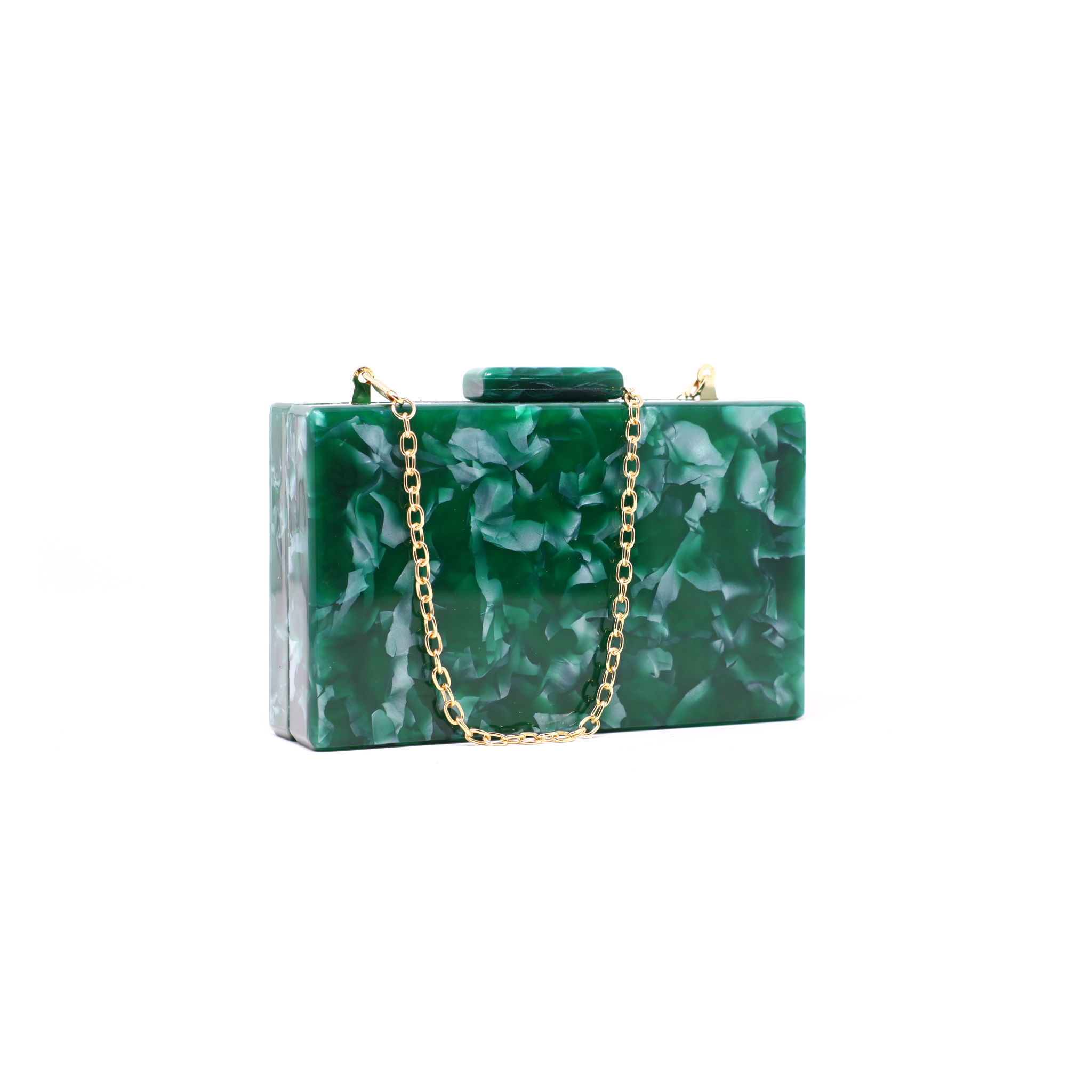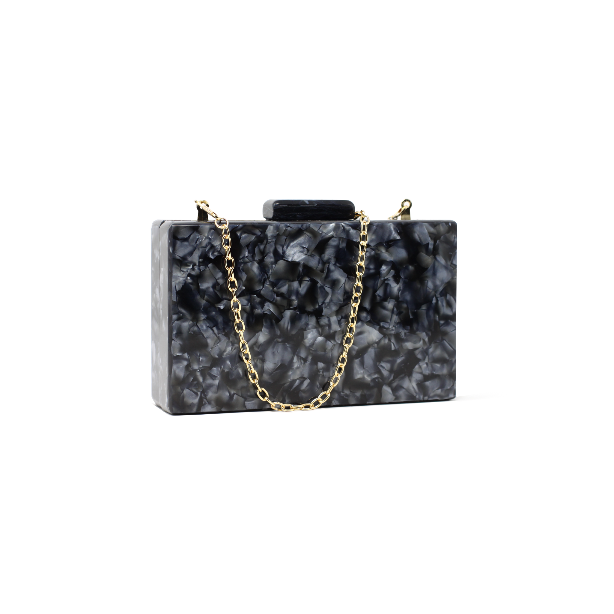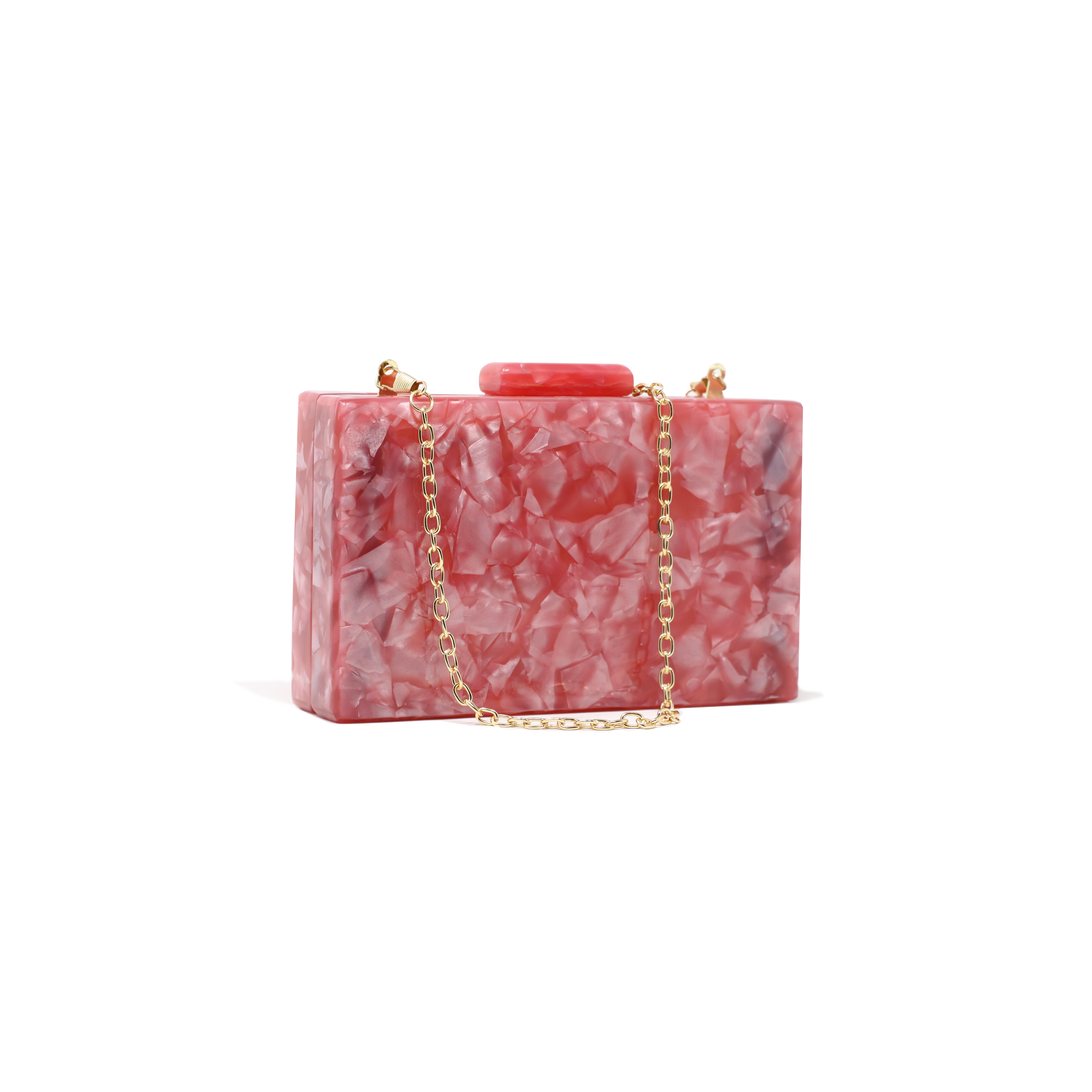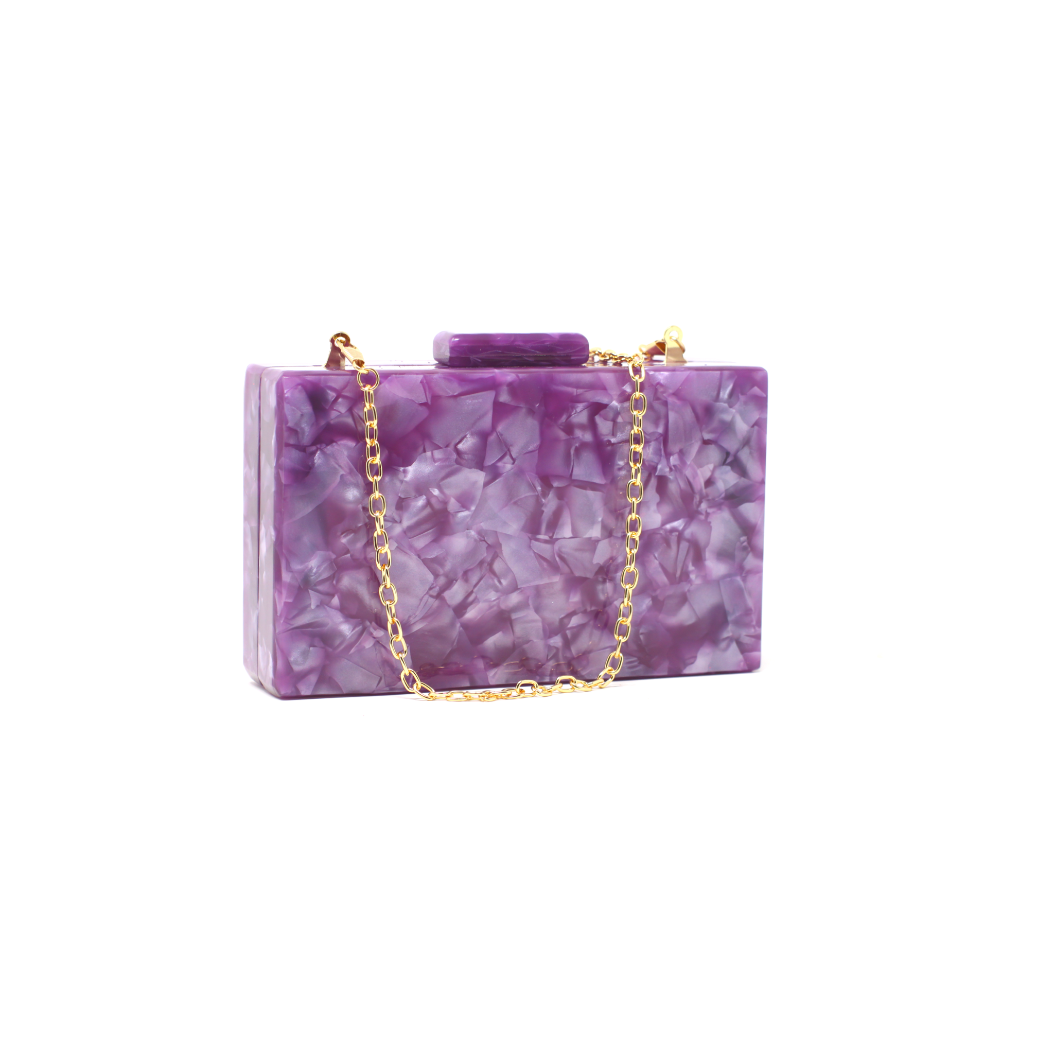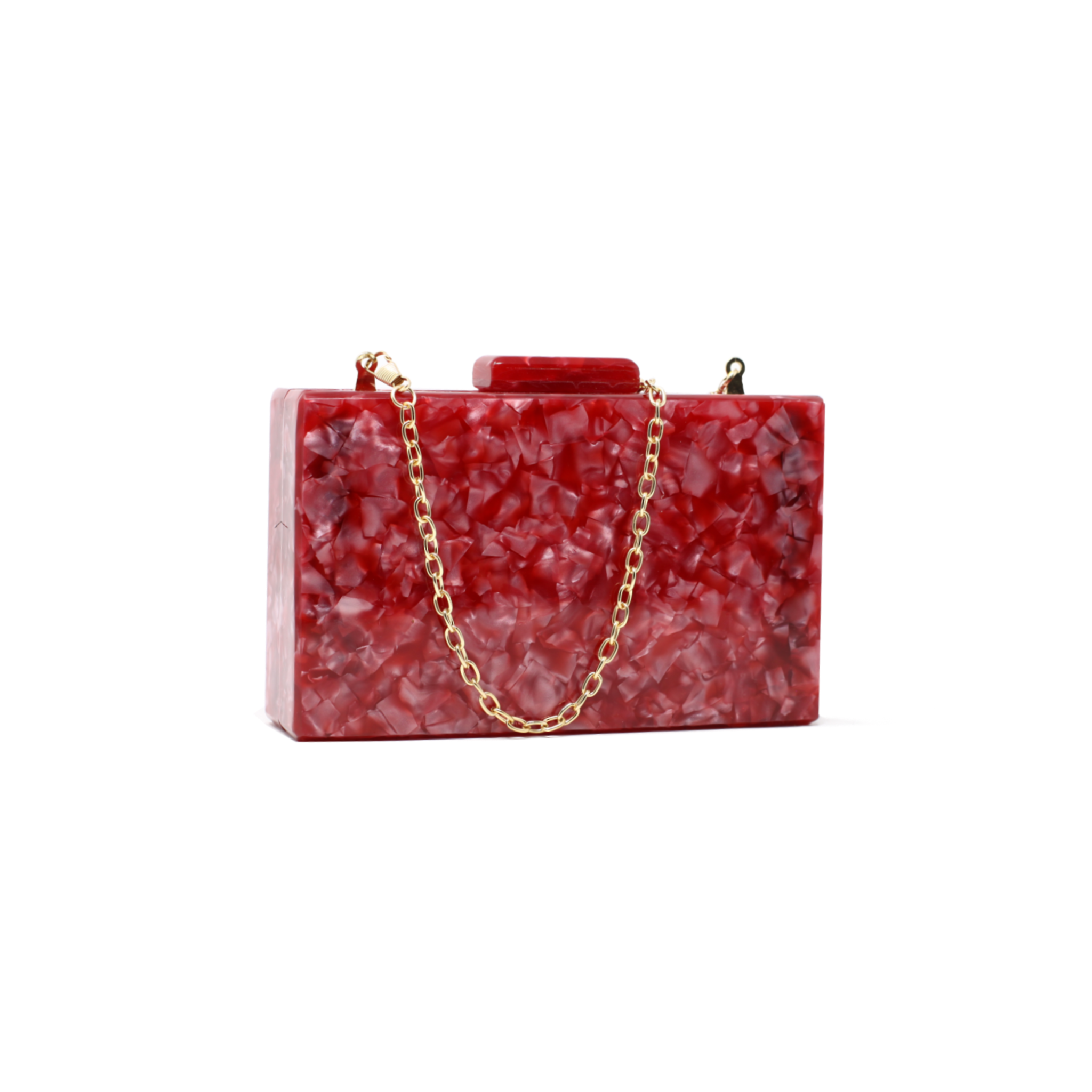 Bolso de fiesta tipo clutch con cierre de imán en diferentes colores con efecto nacarado.  Se puede llevar tanto como bolso de mano como de hombro gracias a su bandolera de cadena.