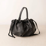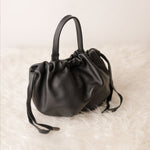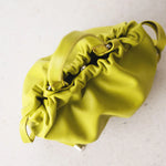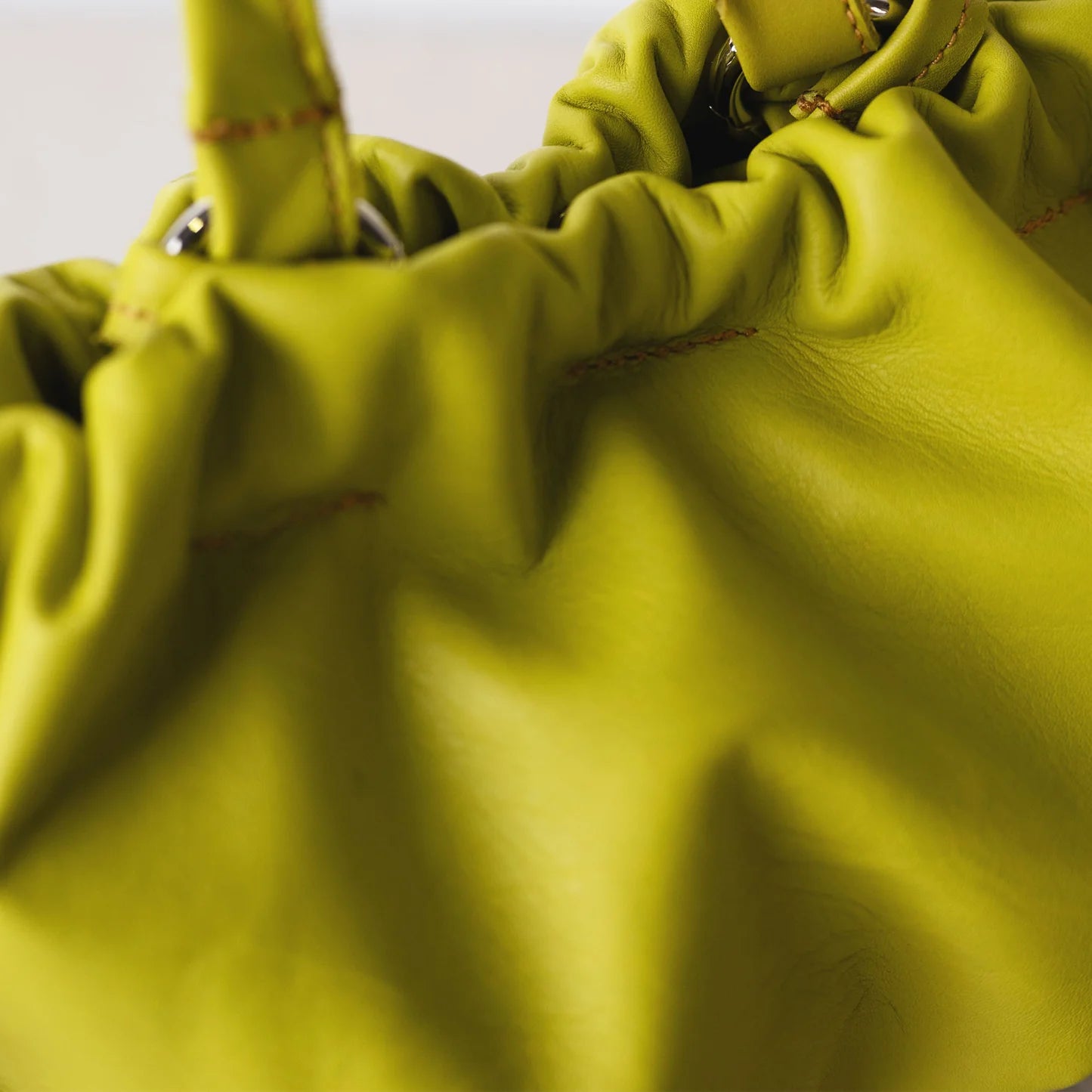 Se trata de un bolso de piel estilo bombonera, con forma tipo bola y suaves ondas que crean un juego de volúmenes delicado y muy favorecedor. Su acabado con arrugas naturales aporta textura y personalidad, haciendo que cada bolso sea diferente y único.