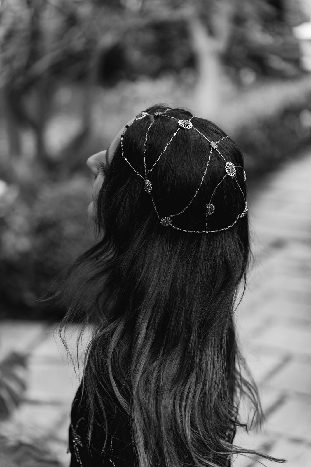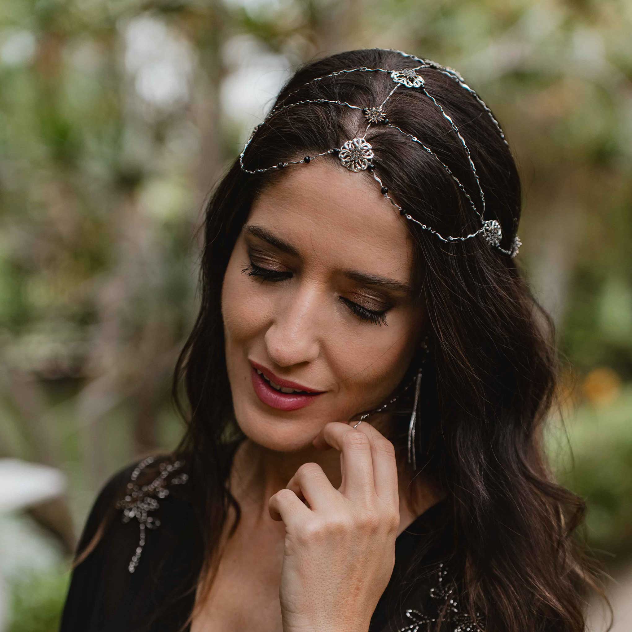 Cada detalle se trabaja pacientemente en nuestro taller, combinando cadenas finas, apliques metálicos y un diseño estructurado que abraza la cabeza con suavidad.