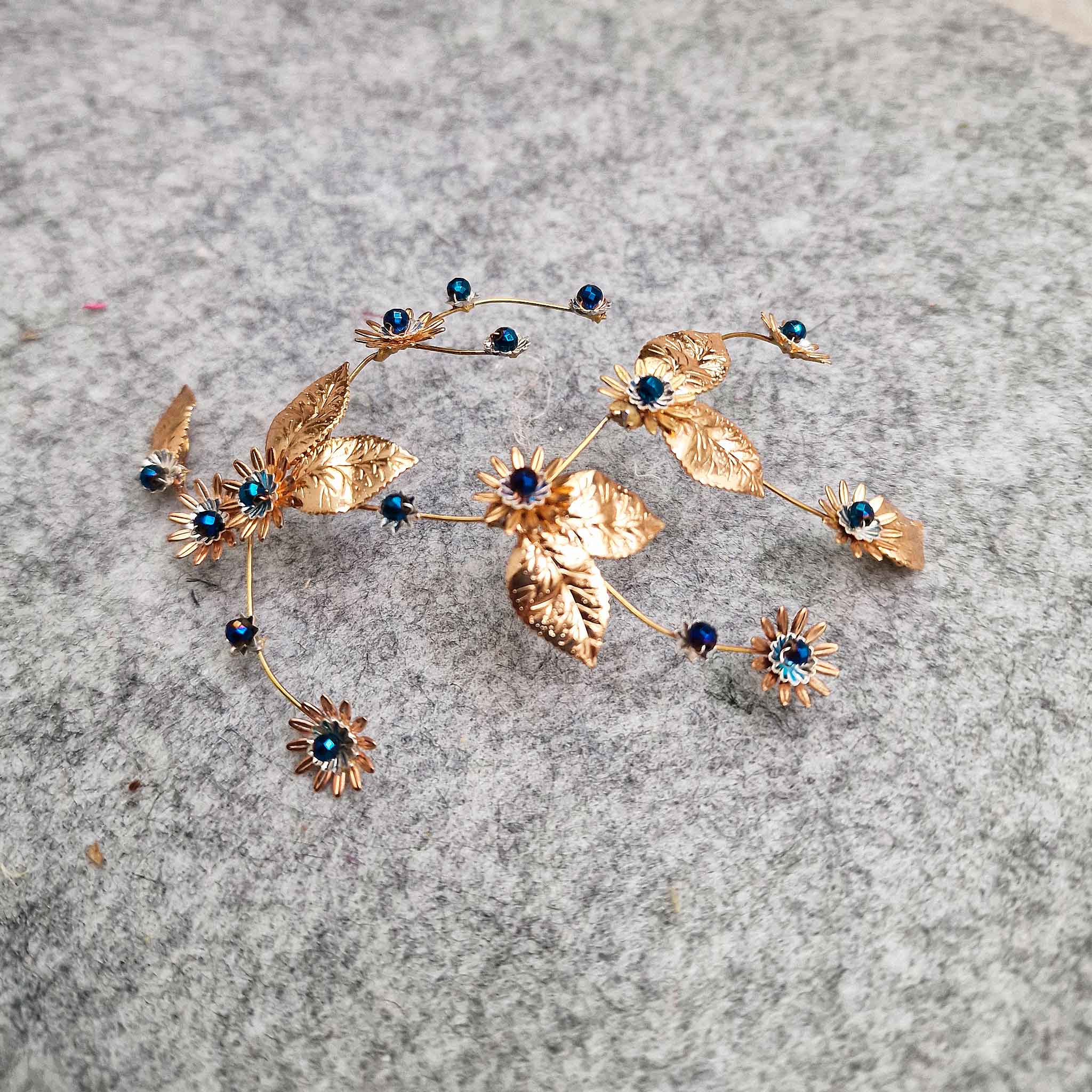 Peineta joya elaborada con piezas doradas y motivos de flores.