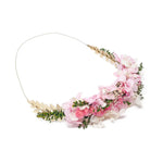 Corona de flores naturales preservadas para comuniones totalmente personalizable. Las flores de esta corona se concentran en la parte frontal, aunque esta corona también se puede llevar en la parte de atrás.