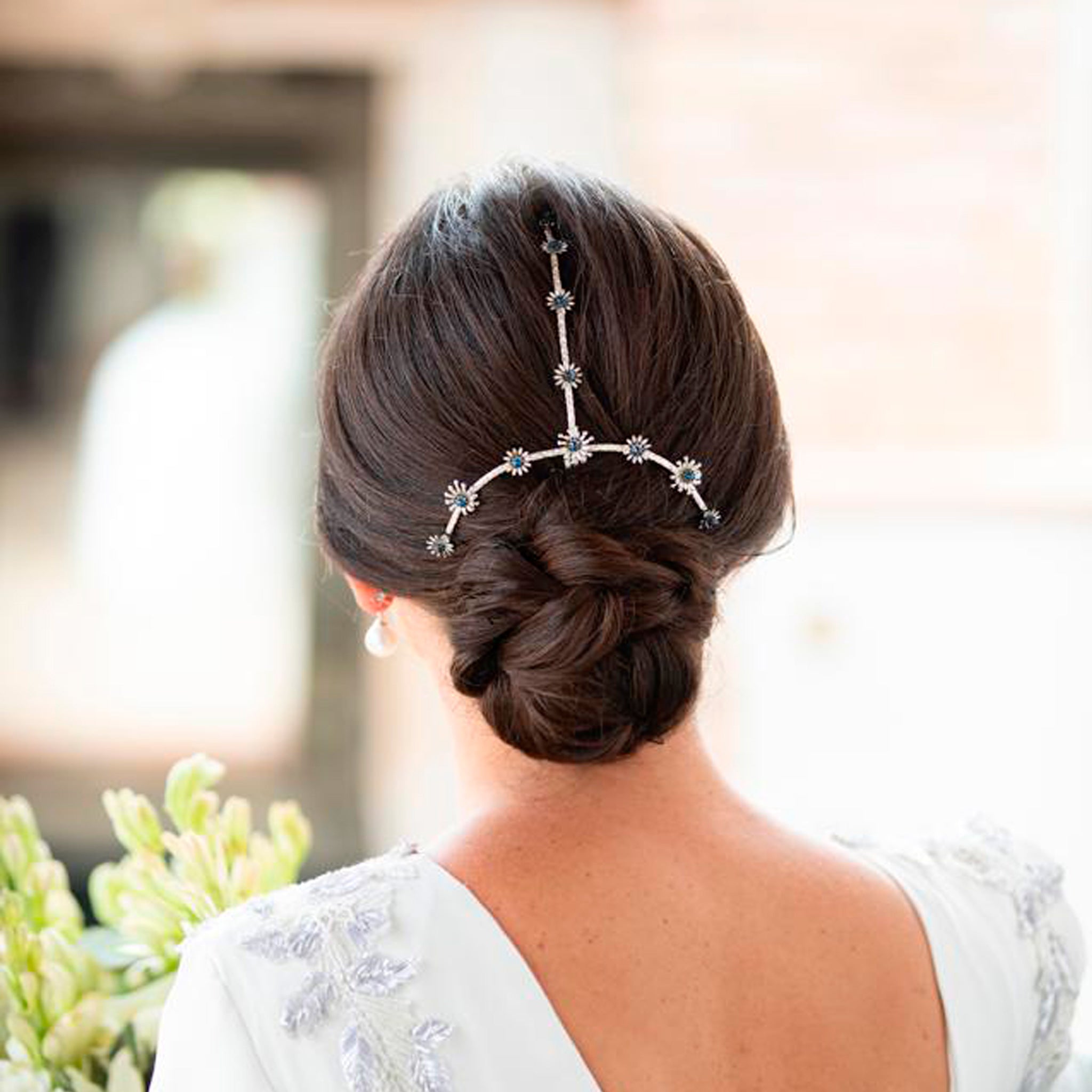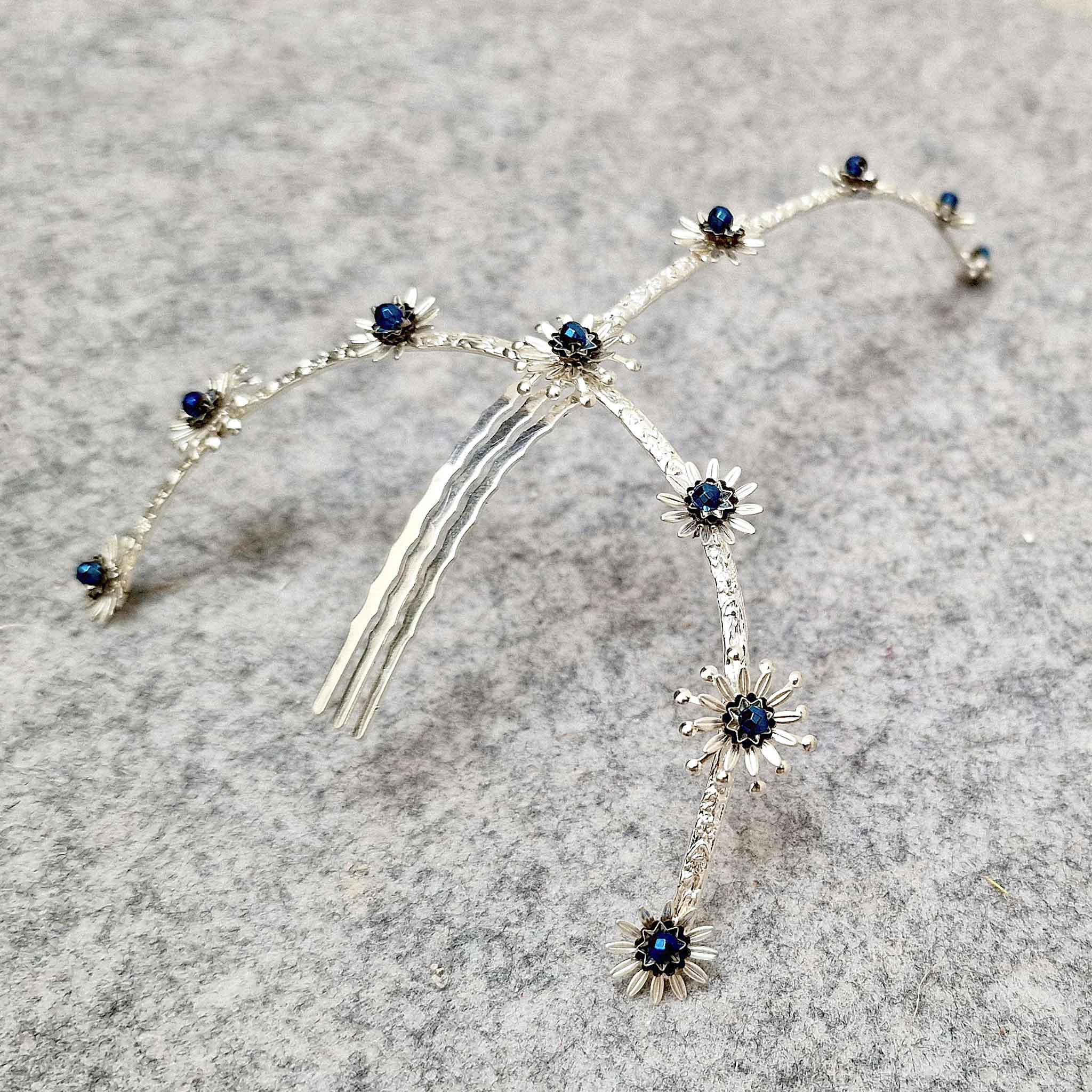 Peineta cubre raíz joya hecha totalmente a mano, pensada para colocar sobre la raya del pelo, cubriéndola.