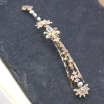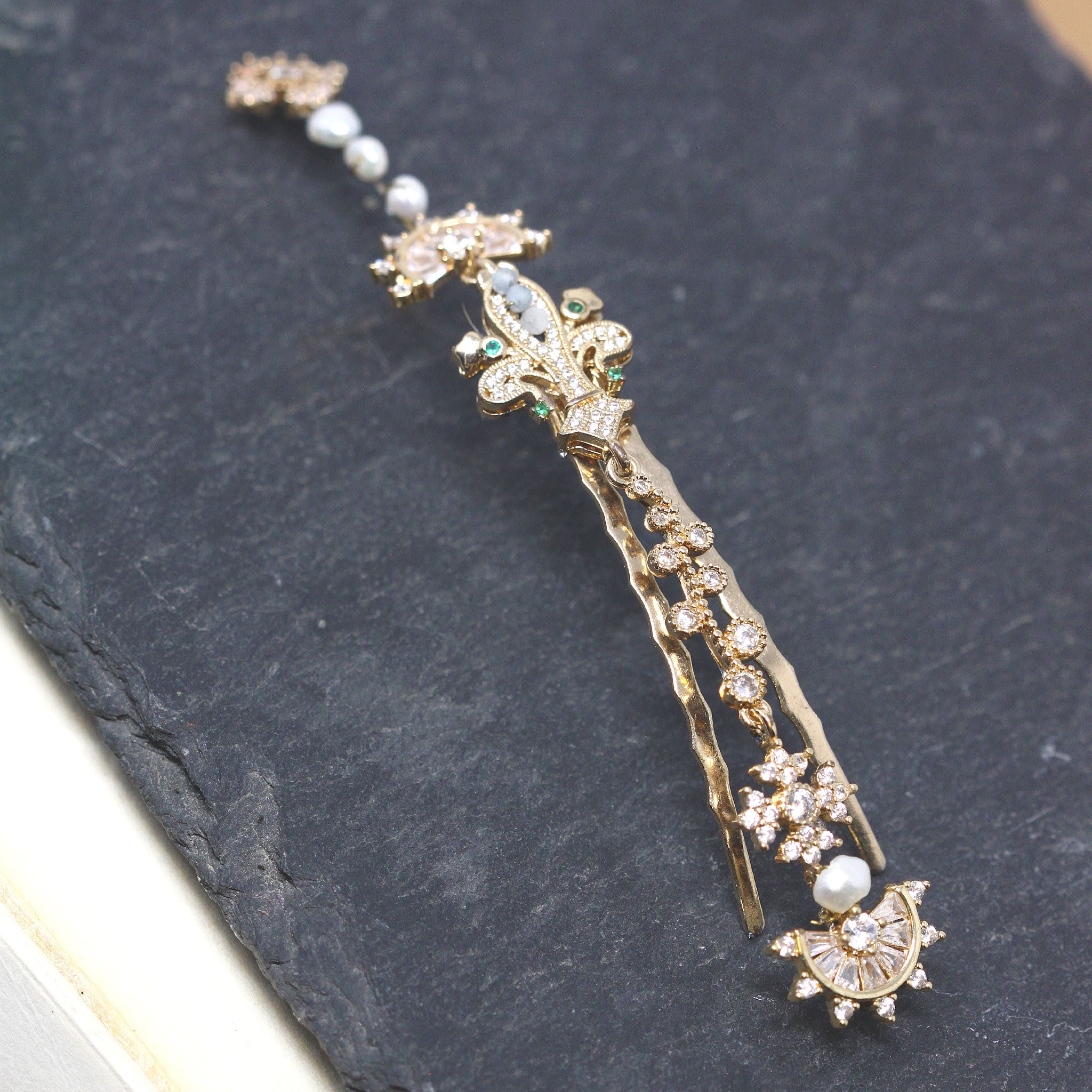 Nos encanta explorar el mundo de los complementos de novia y pasarnos el día inventando para vosotras y cubrir vuestras necesidades, de aqui este nuevo complemento realizado totalmente a mano. Un cubre raíz "MINI" en tonos dorado y piedras verdes y perlas, podemos personalizarte el tuyo y adaptarlo a tu look.