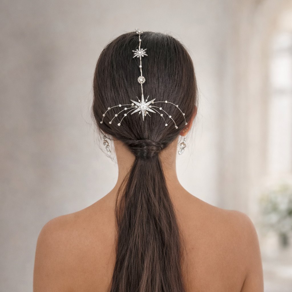 • Estilo Estelar: El diseño en tono plateado con estrellas aporta un toque de elegancia y brillo a tu cabello, haciendo que destaque en cualquier ocasión.