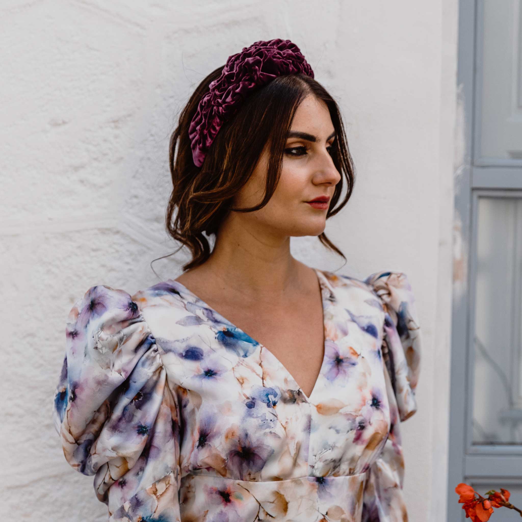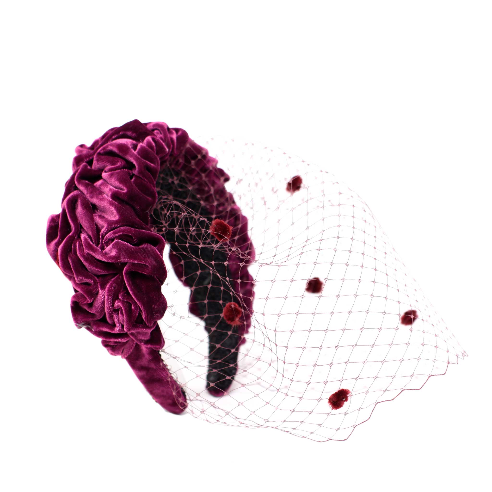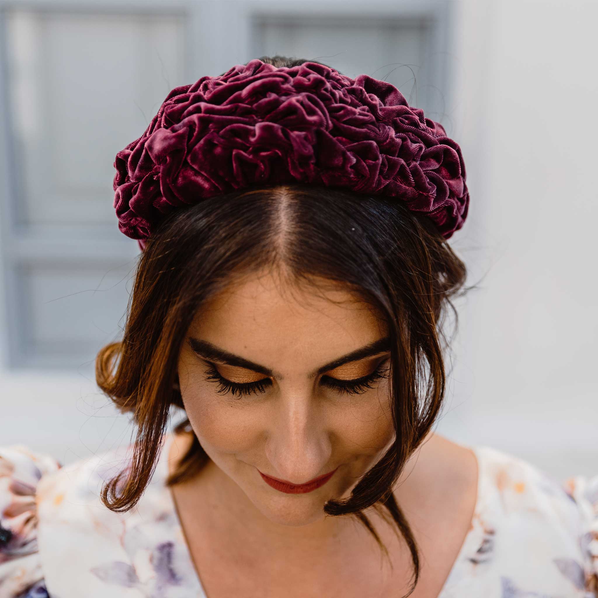 Diadema tipo arrugada totalmente hecha a mano de terciopelo.