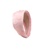 Diadema elaborada totalmente a mano con plumas rosas, decorada con una preciosa variedad de piezas joya y cristales.