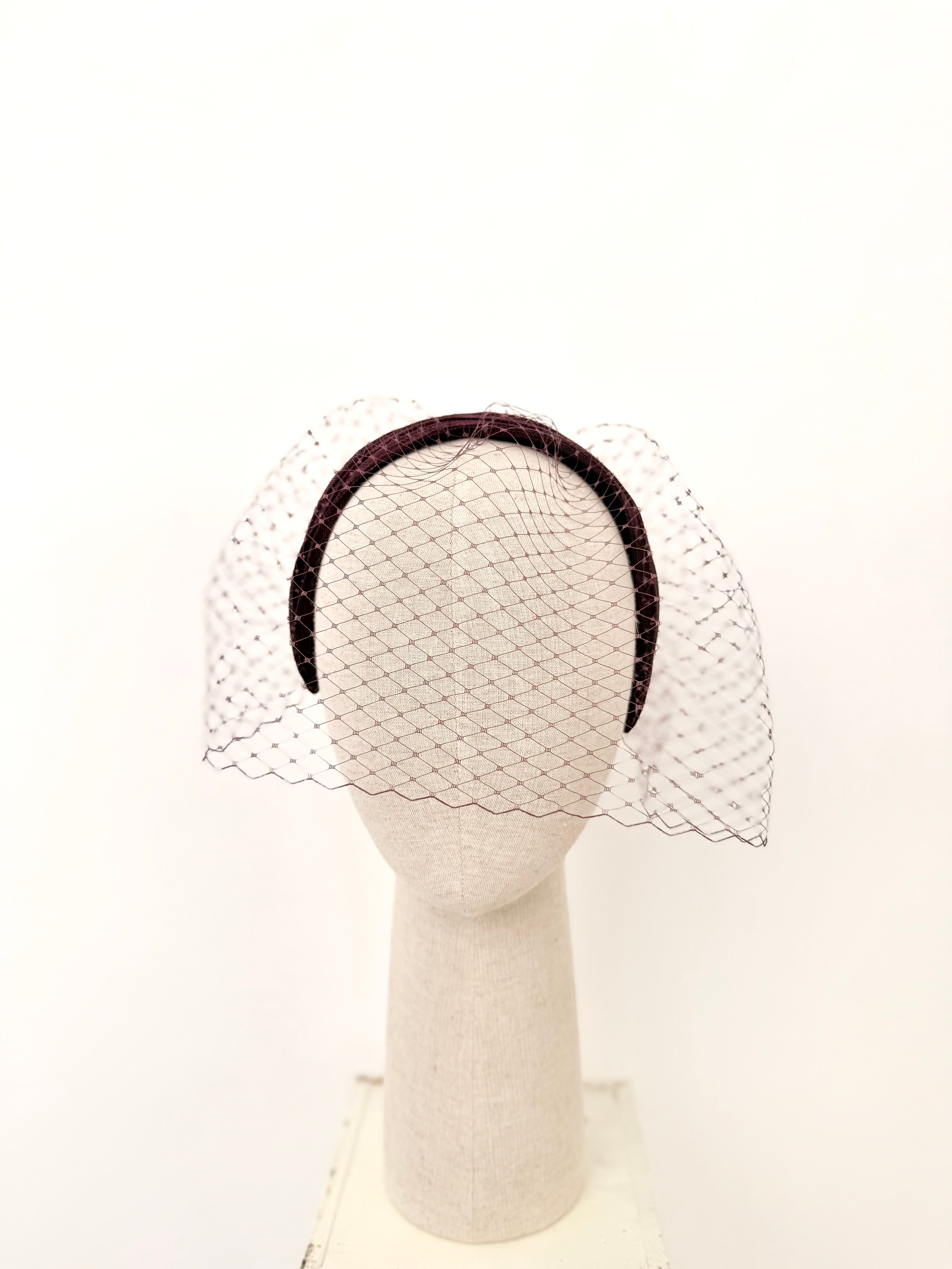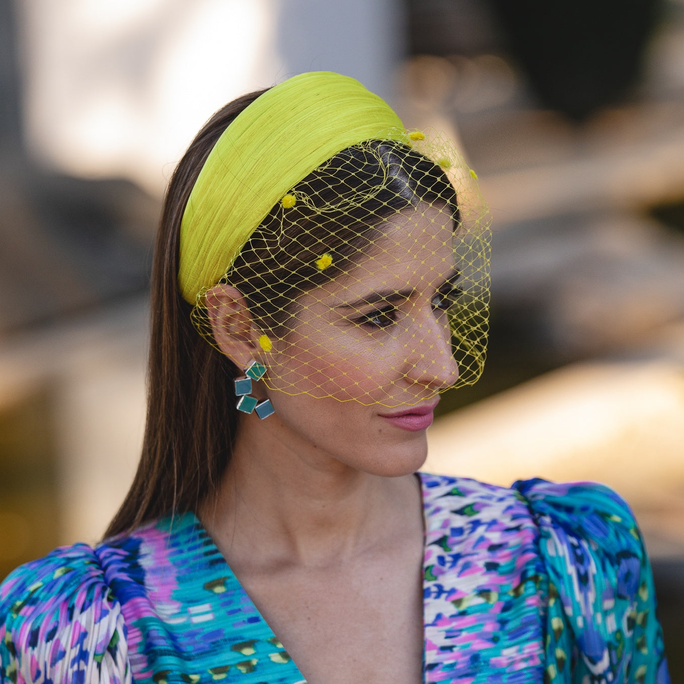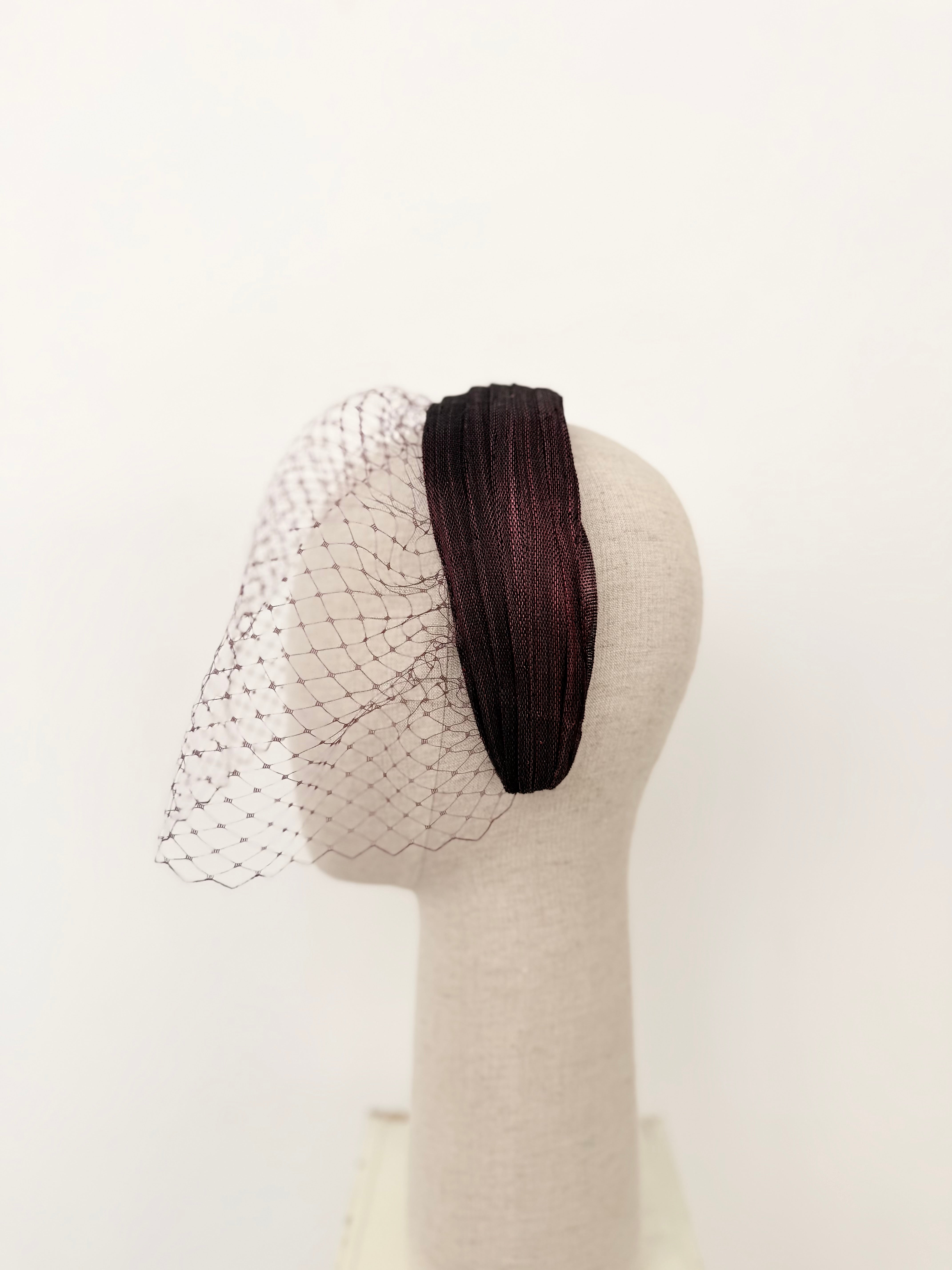 Diadema de invitada totalmente elaborada a mano con sinamay de seda. Éstos pueden elegirse de diferentes colores.
