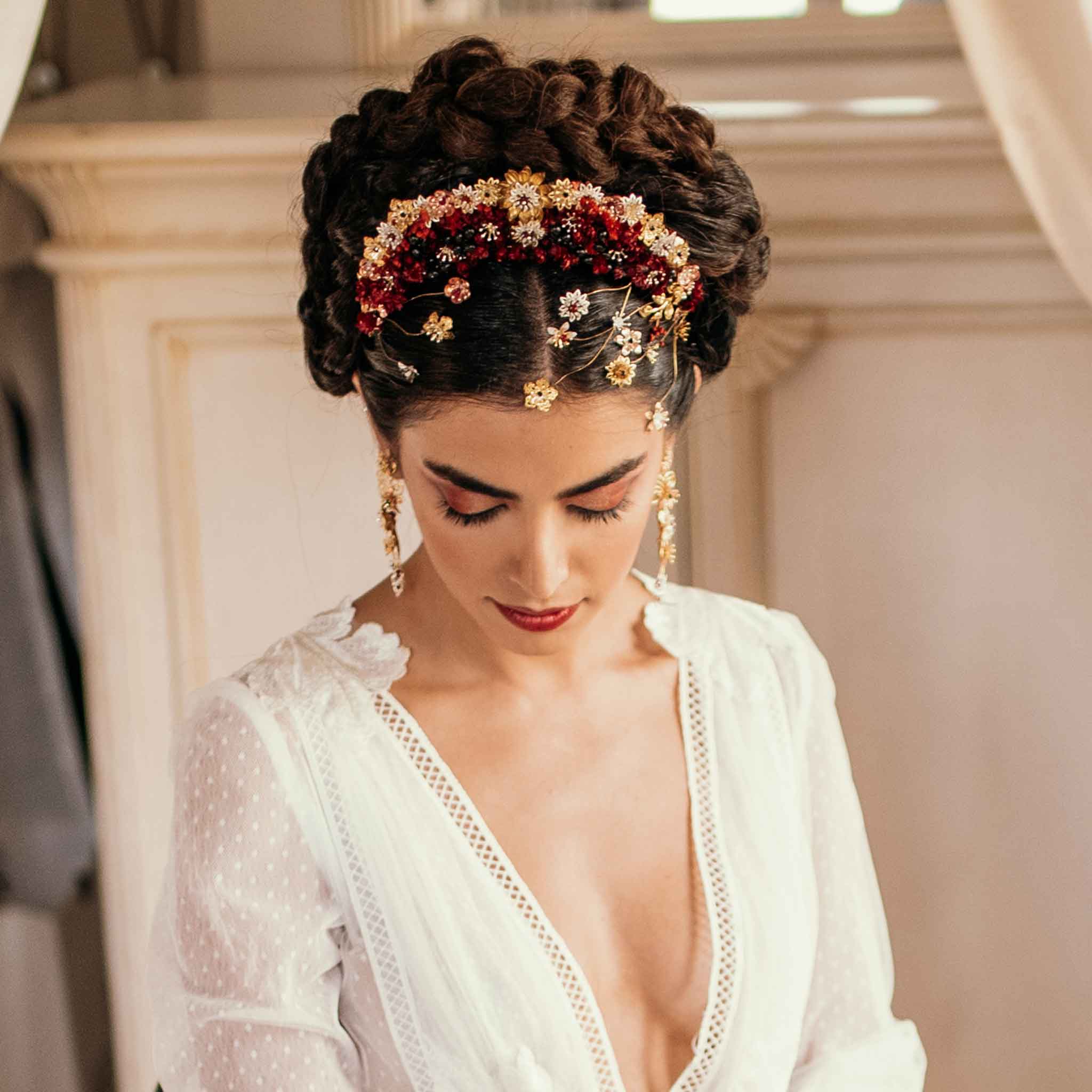 *Al estar elaborado a mano bajo pedido, es posible que haya alguna que otra variación en cuanto al color y posicionamiento de los elementos que conforman el tocado. El tiempo estimado de preparación son de 10 a 20 días.