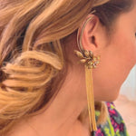 Earcuff- trepador realizado a mano a fuego con técnicas de joyería en latón, las cadenas son de quita y pon ya que van unidas a la turca asi que en un mismo trepador tienes dos posibilidades.