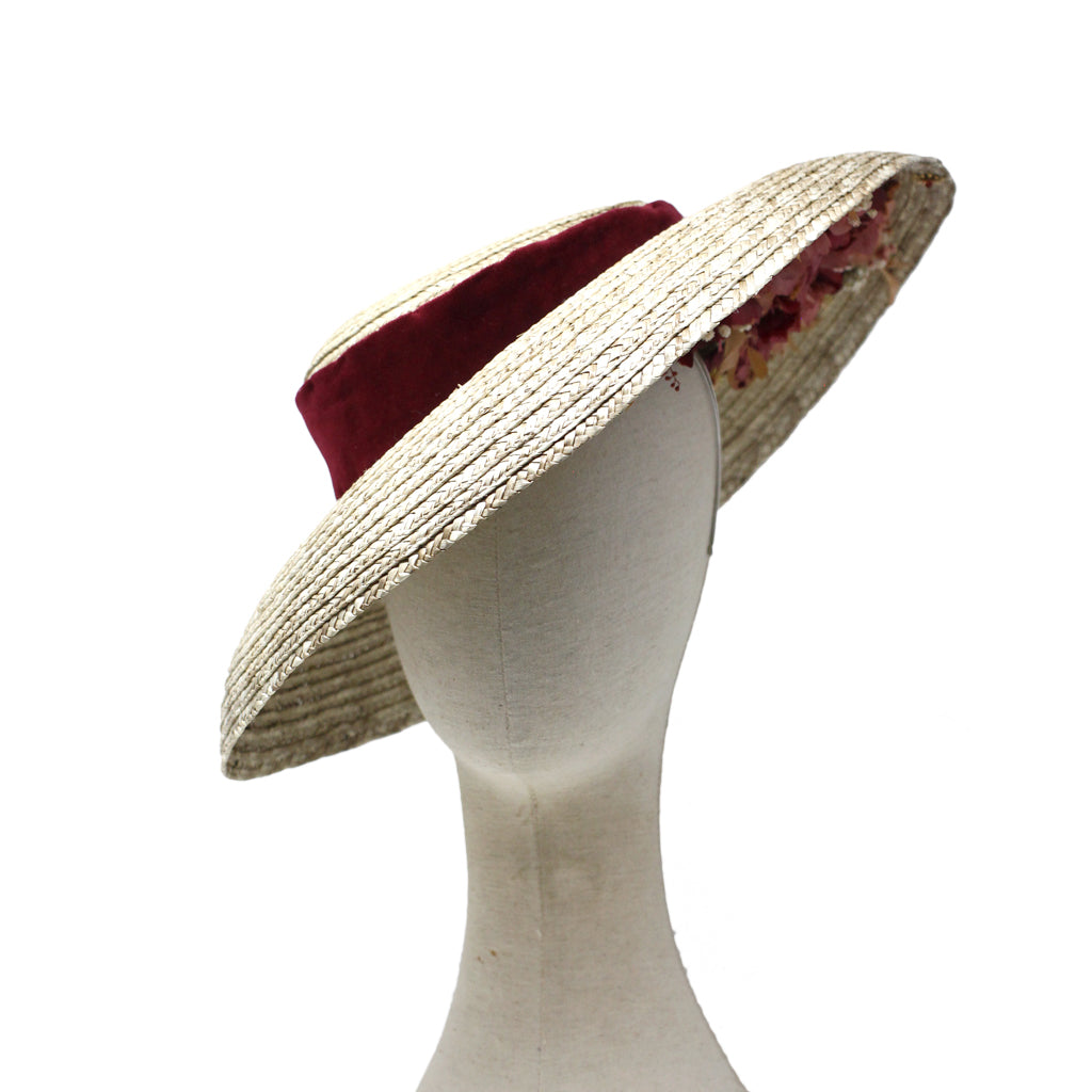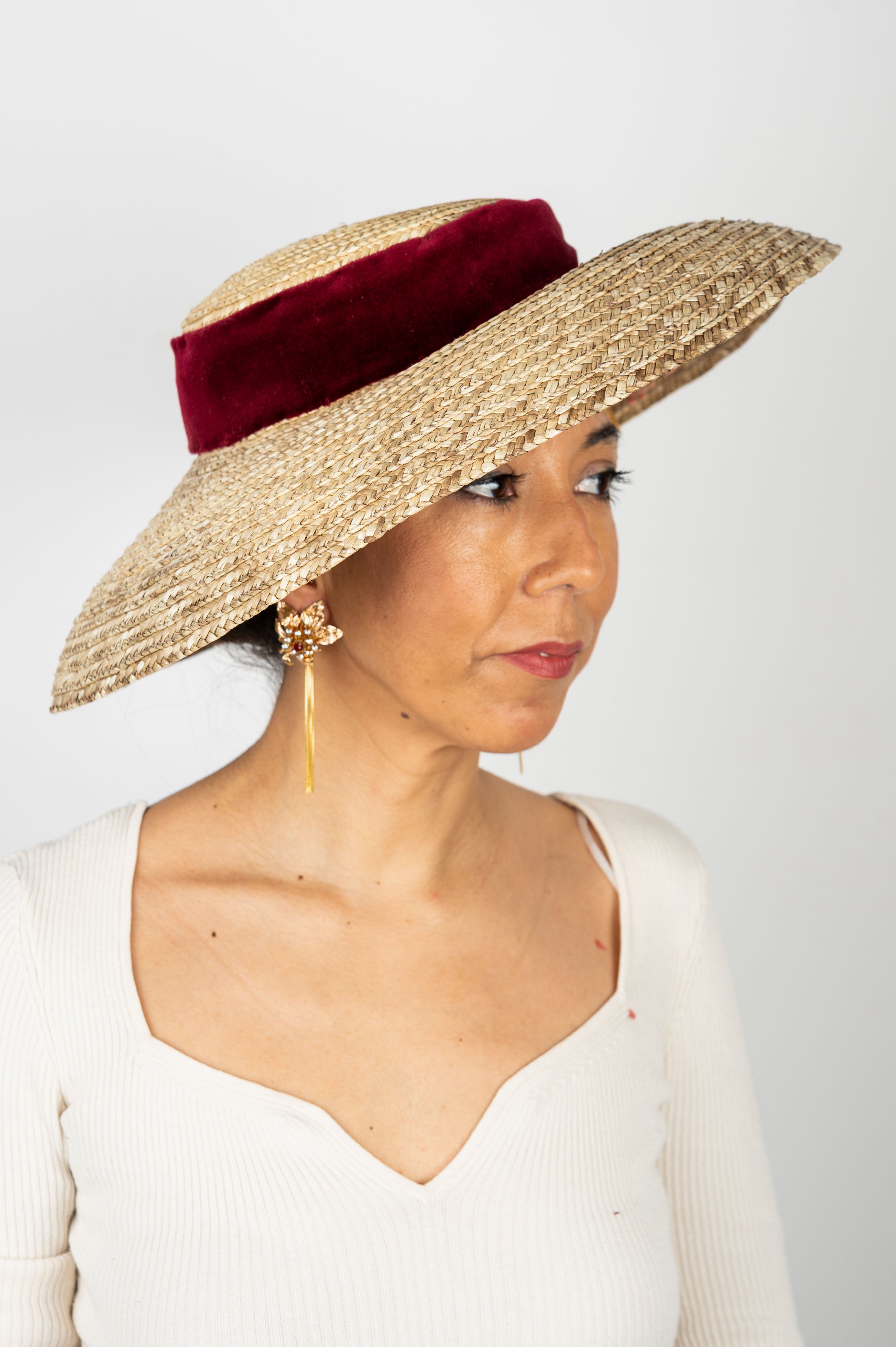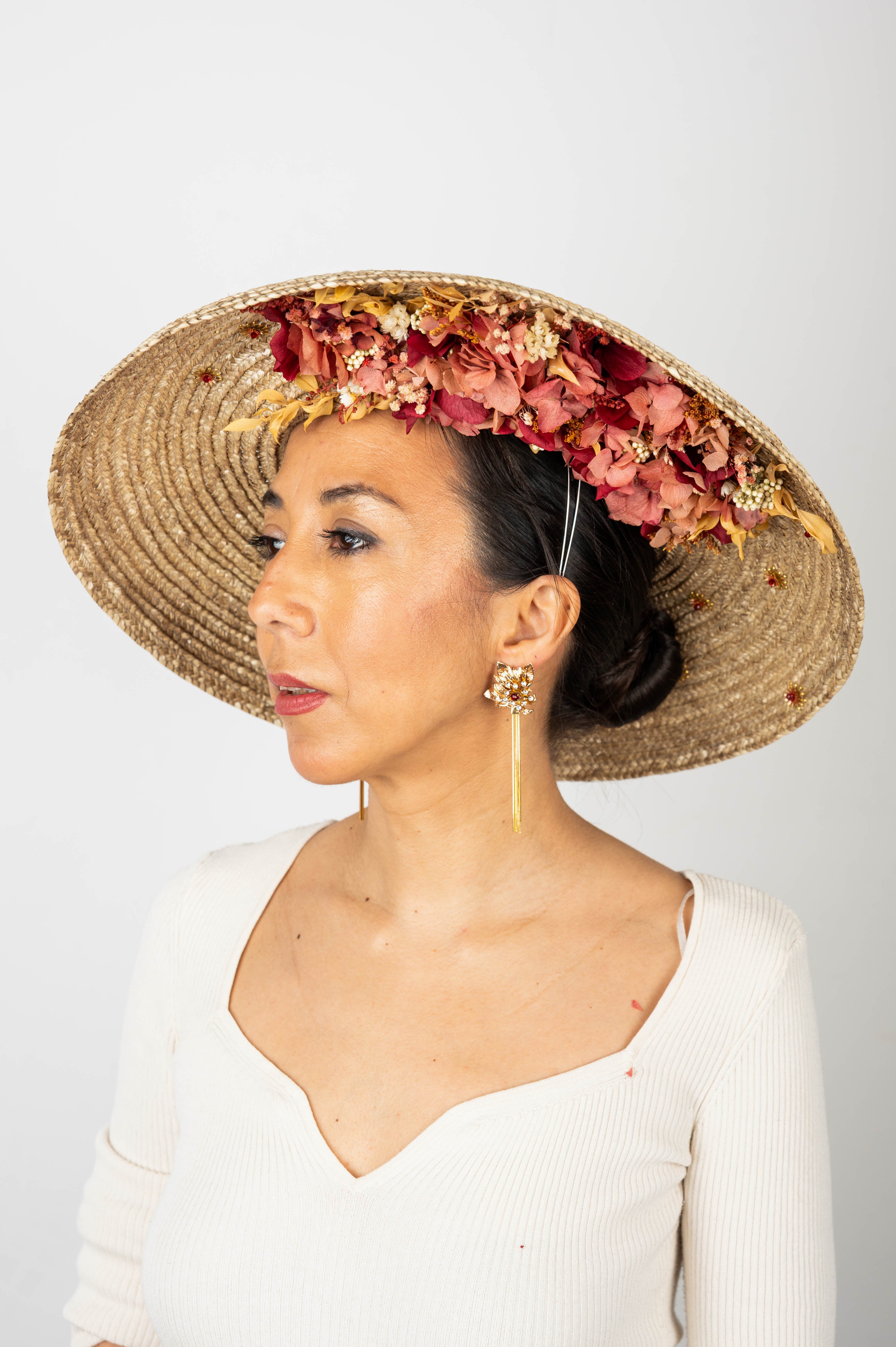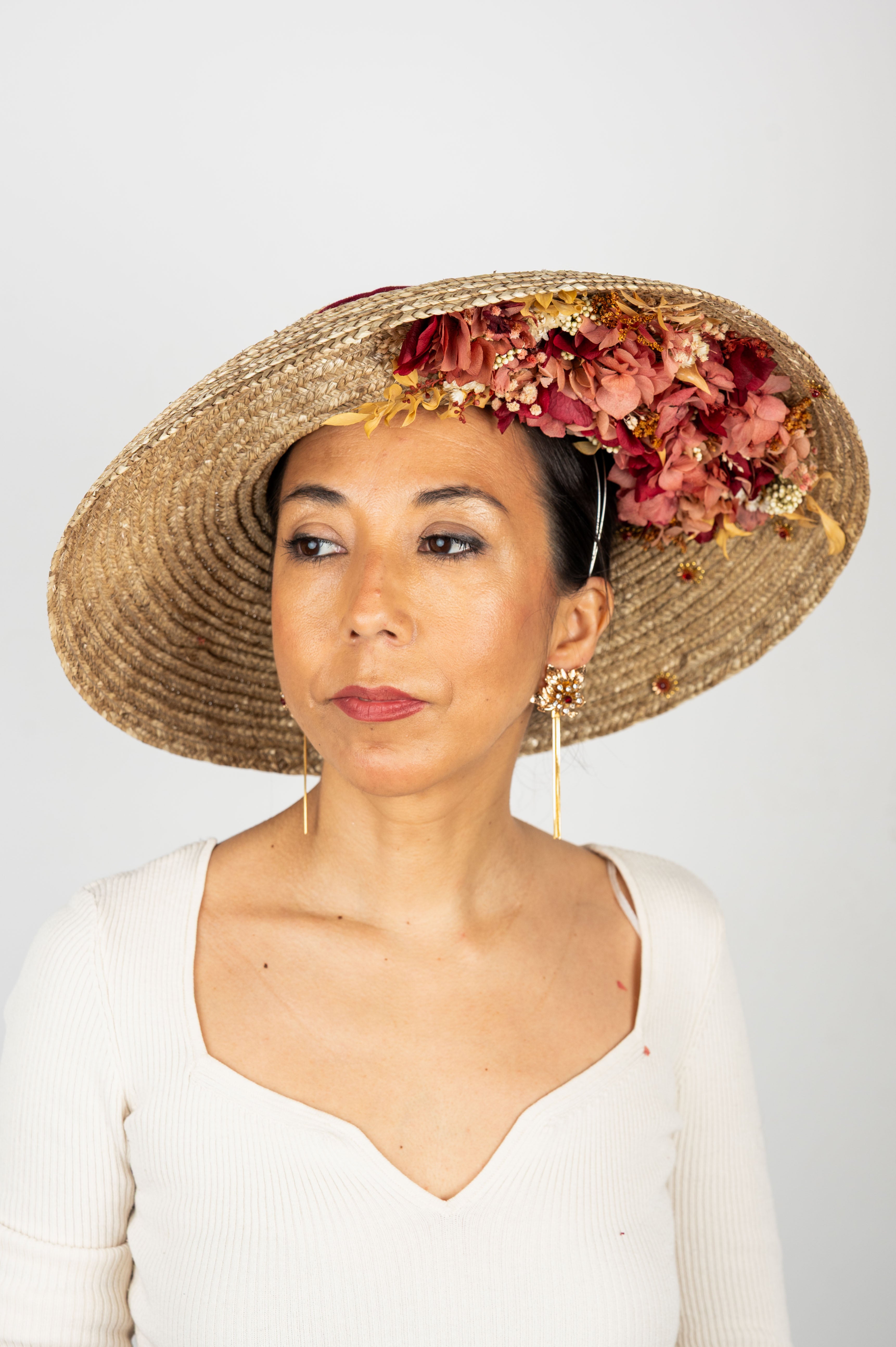 "Descubre nuestra pamela estilo sombrero con forma única y decoración artesanal de terciopelo y flores preservadas. Este elegante sombrero presenta un diseño original que realza tu estilo y te brinda un toque distintivo en cualquier ocasión. Fabricado con materiales de alta calidad y adornado con sinamay, este sombrero de moda es la elección perfecta para destacar en eventos y celebraciones. ¡Haz una declaración de moda con esta pamela exclusiva que combina estilo, elegancia y autenticidad!"