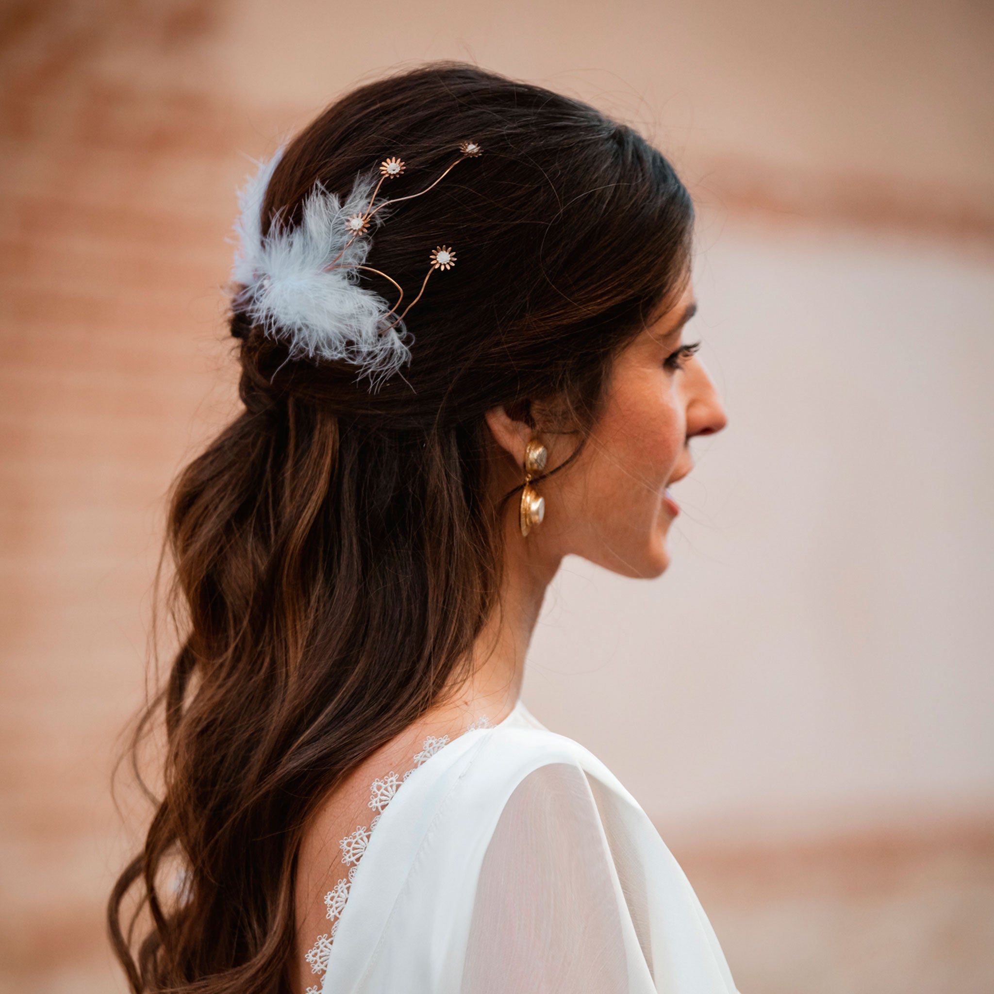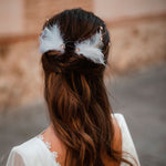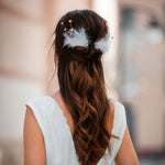 Como con todos nuestros diseños, puedes personalizar tanto la base las piedras, como la decoración del tocado. Si deseas personalizar este diseño puedes enviarnos un mensaje por whatsapp o un e-mail con tu idea y podemos intercambiar ideas, enseñarte fotos de otras piezas y decoraciones, y podrás acompañarnos a lo largo de todo el proceso. ¡Estamos más que encantadas de crear un tocado acorde con tu vestido, traje y complementos!