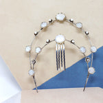 1. Artesanía a mano: Cada peina se confecciona cuidadosamente a mano en metal en color plateado y perlas naturales de rio.