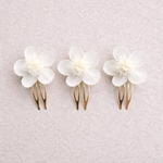 Con un diámetro aproximado de 3,3 a 3,7 cm y una altura de 1 a 1,3 cm, son ideales para colocar en recogidos, semirrecogidos o peinados sueltos, aportando un punto romántico y muy cuidado.