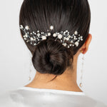 Conjunto completo , combinando ambas peinetas con una pieza extra de perlas de río, tal como luce nuestro modelo.