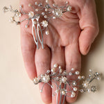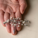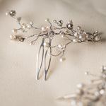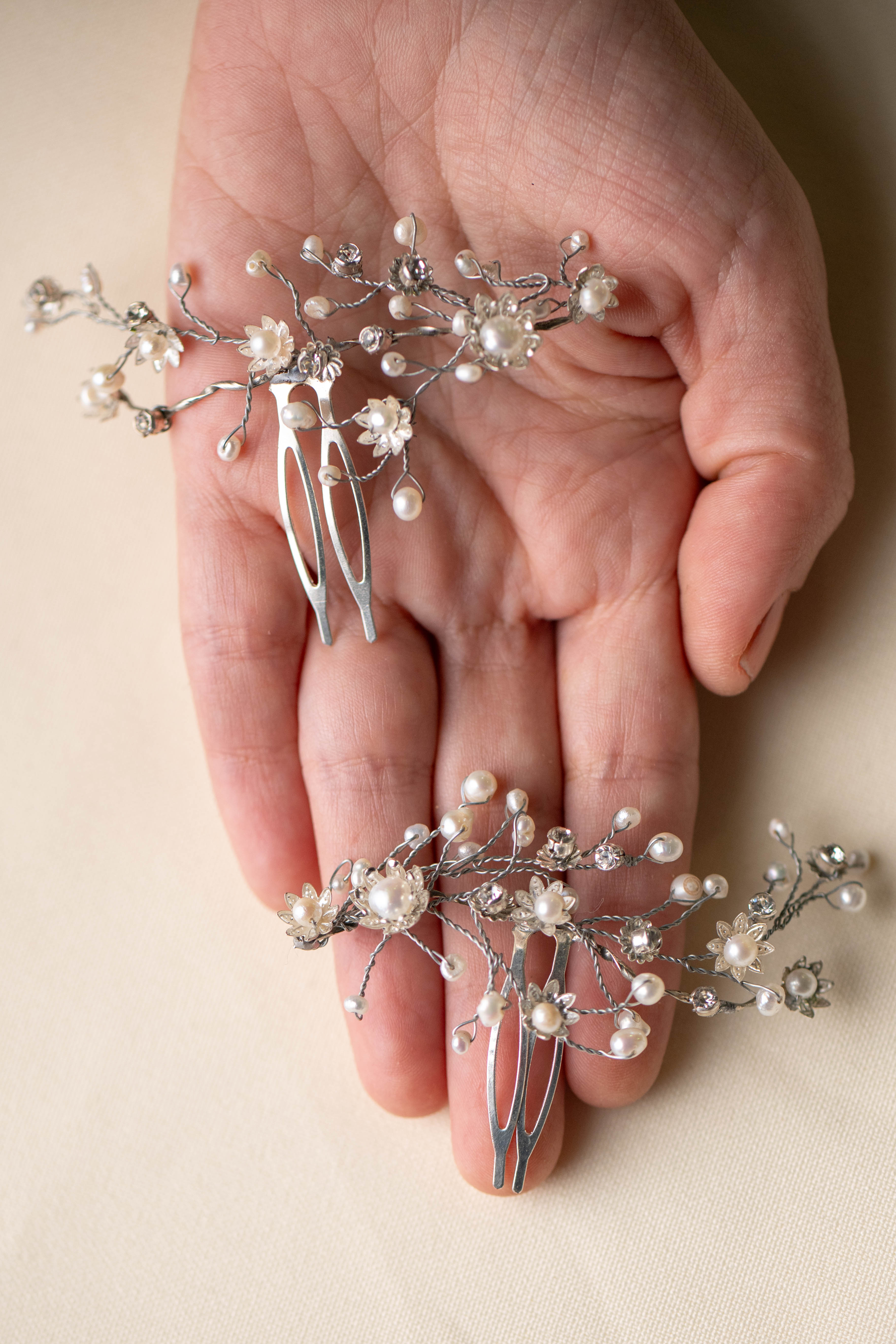 Descubre nuestras peinetas joya con perlas de río , diseñadas a mano en forma de delicadas ramas para aportar un toque de sofisticación y naturalidad a tu peinado de novia. Su diseño versátil permite adaptarlas a distintos estilos, ya sea usándolas individualmente, en pareja o con una pieza adicional para un efecto aún más especial.