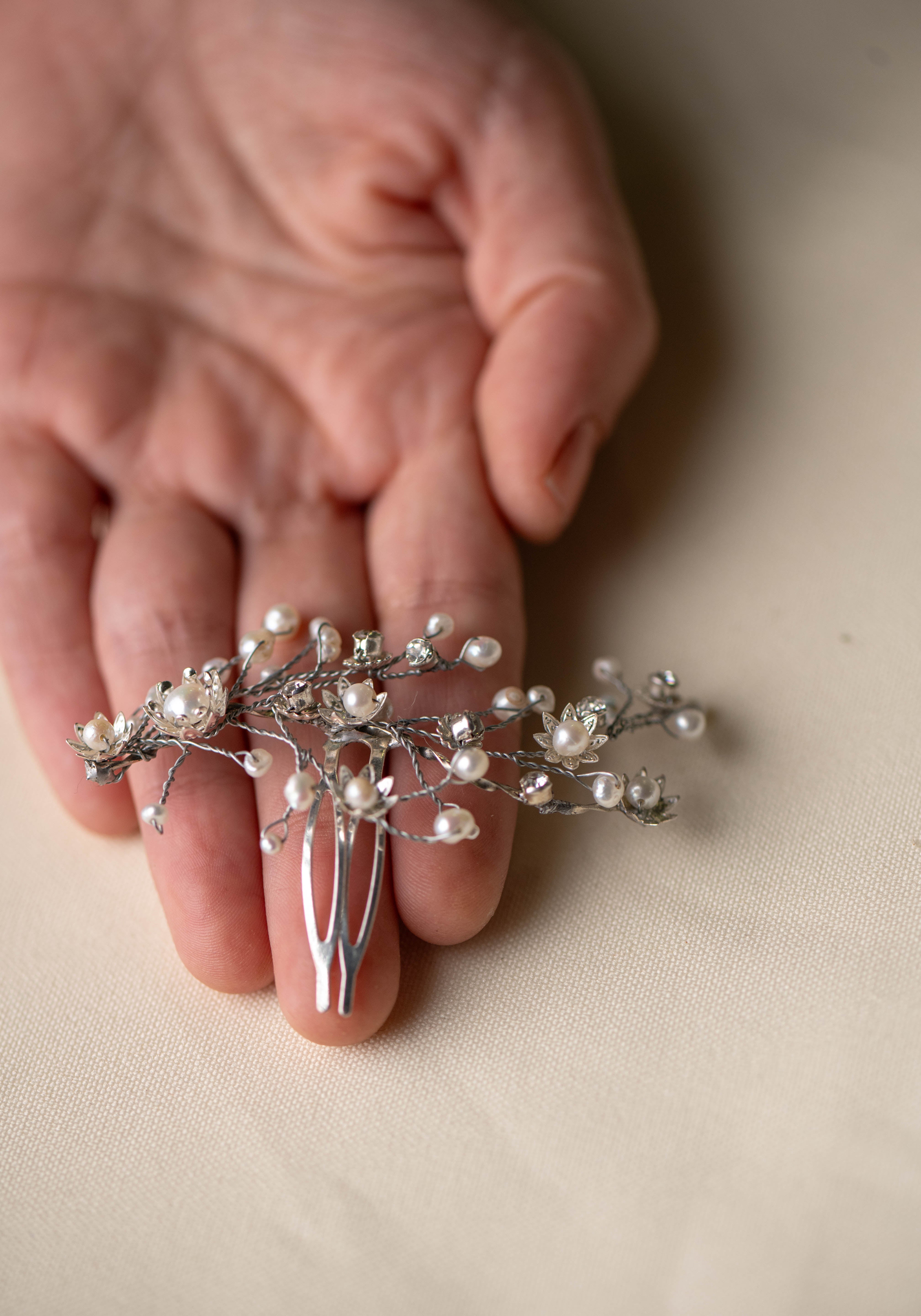 Elige la combinación perfecta para ti y luce un accesorio único en tu gran día. Carga tu peineta ahora y deja que las perlas de río iluminen tu camino al altar.