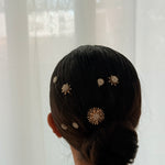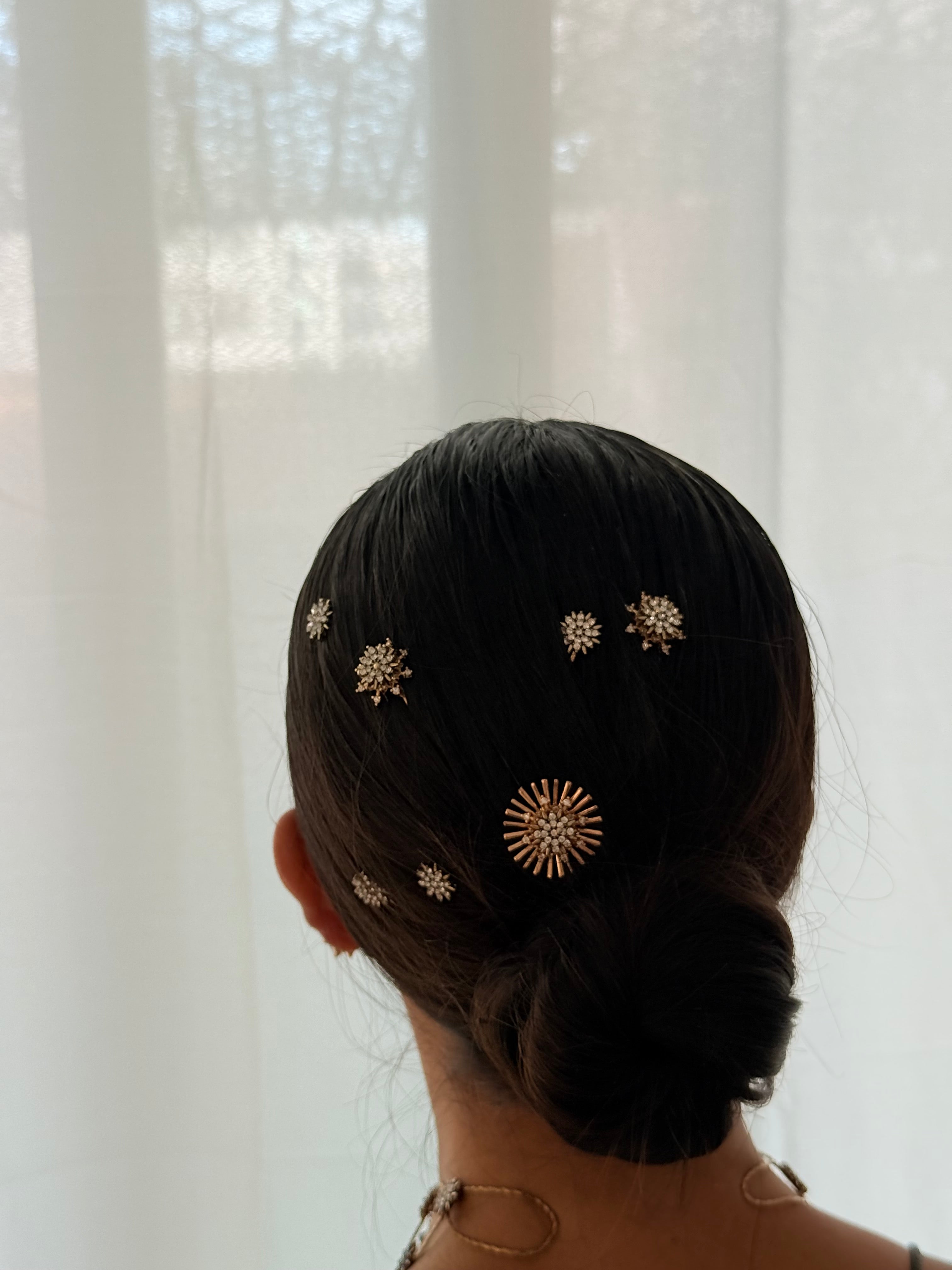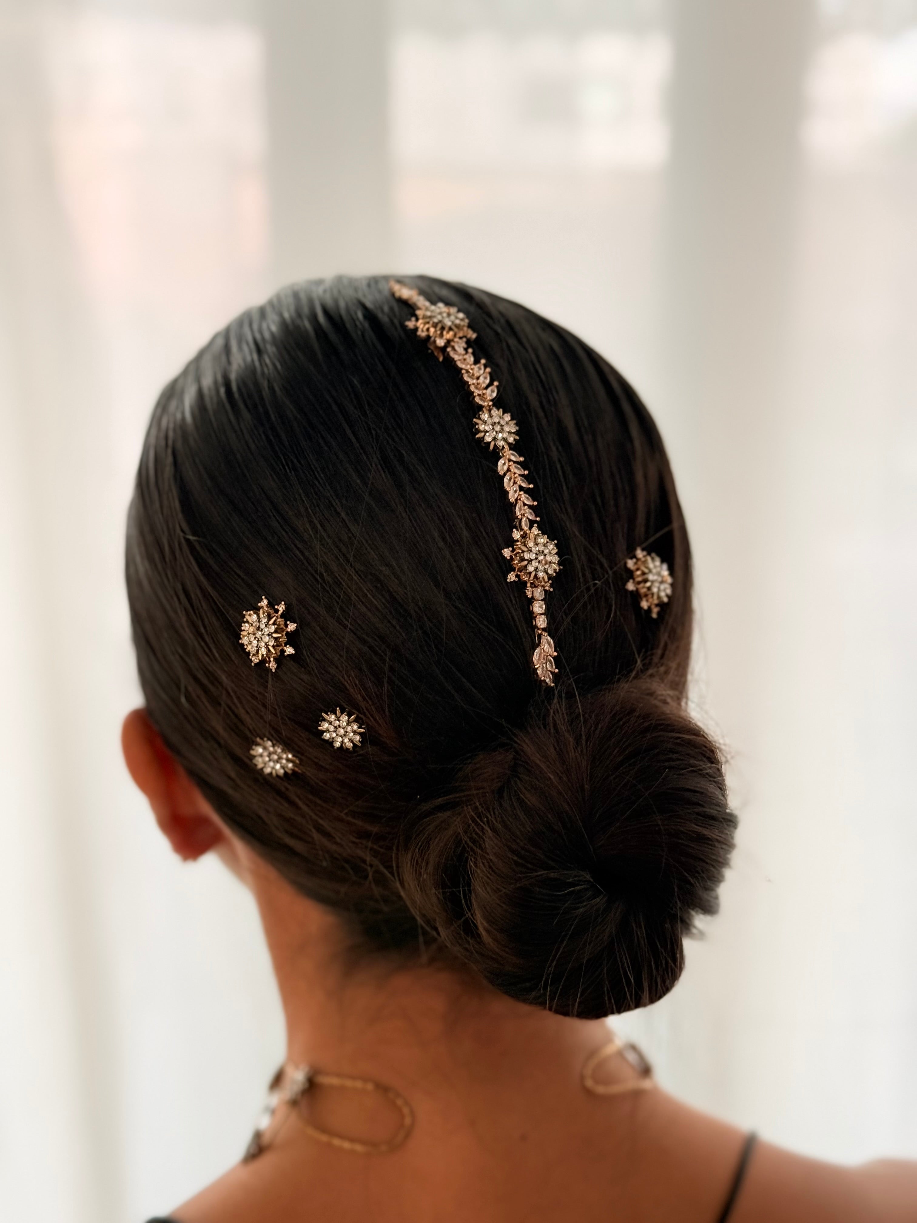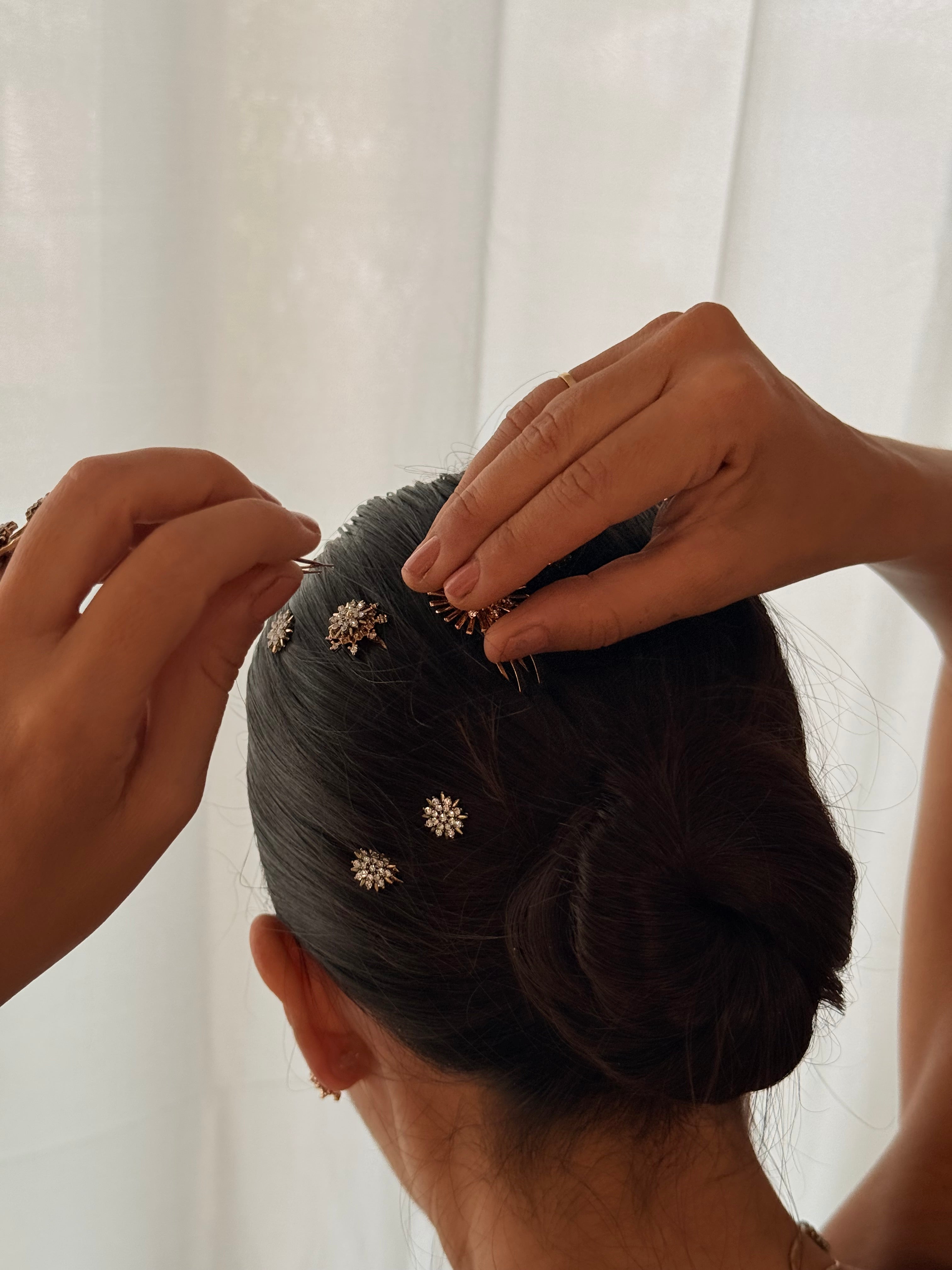 Nuestra colección Elmira no podía terminar de otra manera que con unos detalle que destellen como estrellas este maravilloso juego de peinas, elige las tuyas y haz tu conjunto.