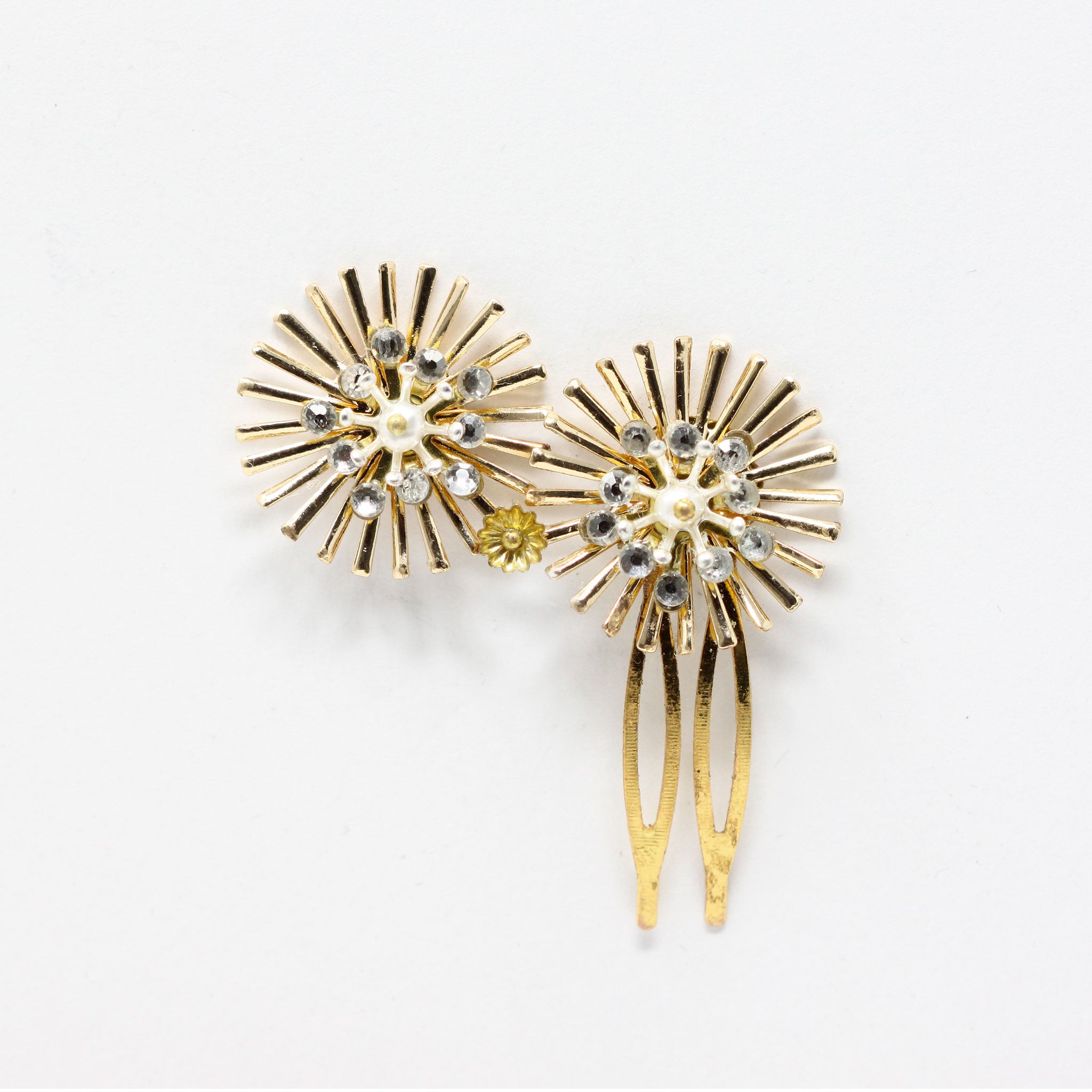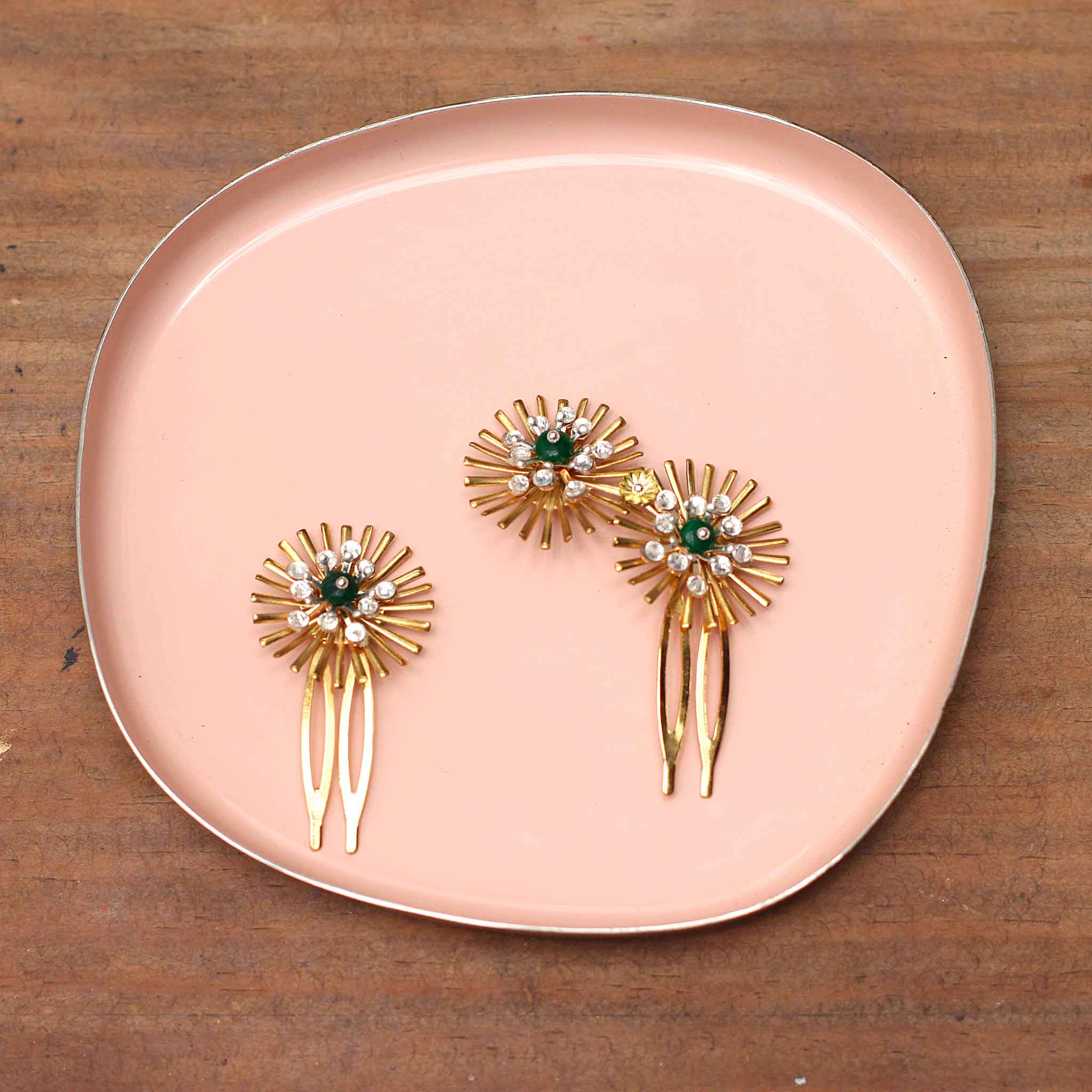 Peinas decoradas con piezas joya en diferentes metales y tamaños, con estrellas como pieza central.