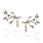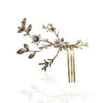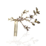 Peineta joya realizada a mano en nuestro atelier con piezas únicas diseñadas por nosotras mismas en latón, coronada con piedras de swarovski.