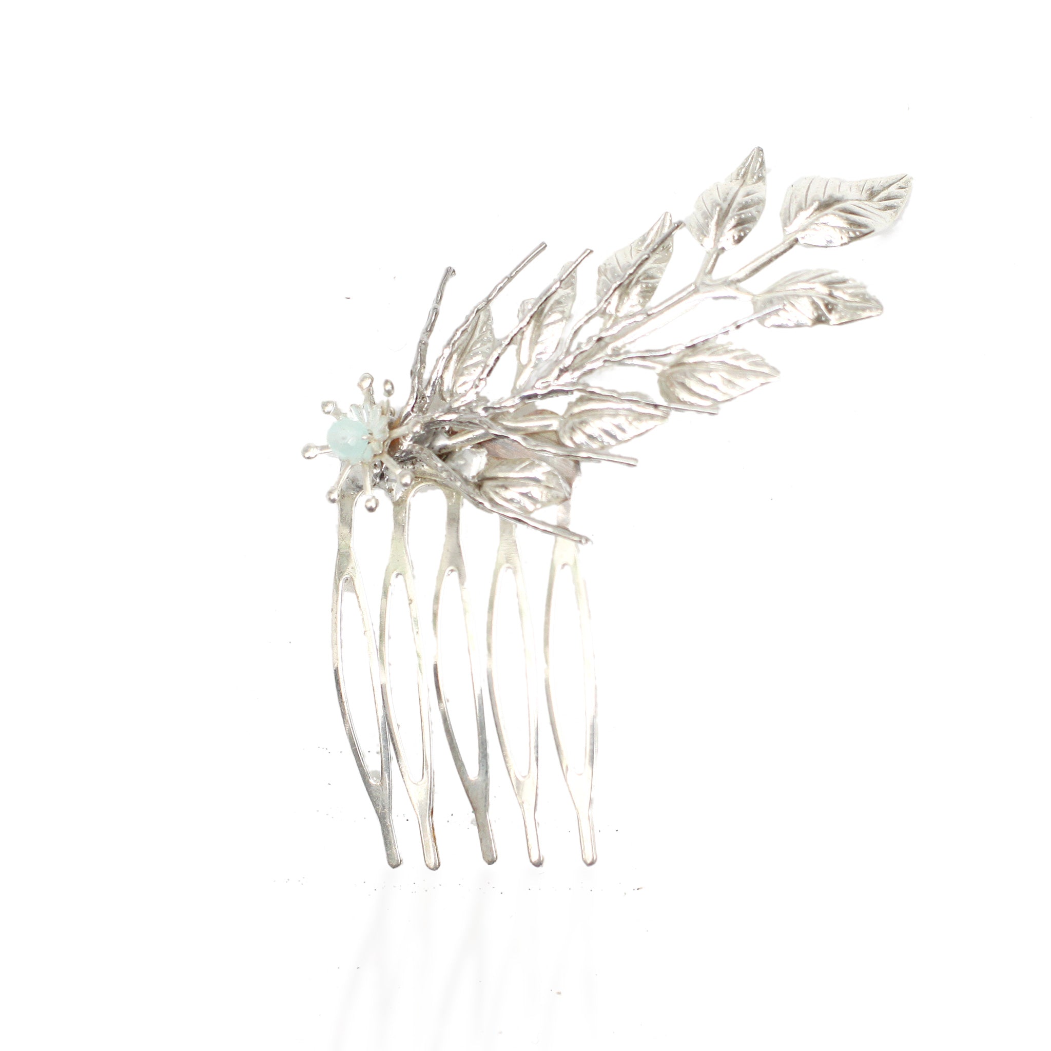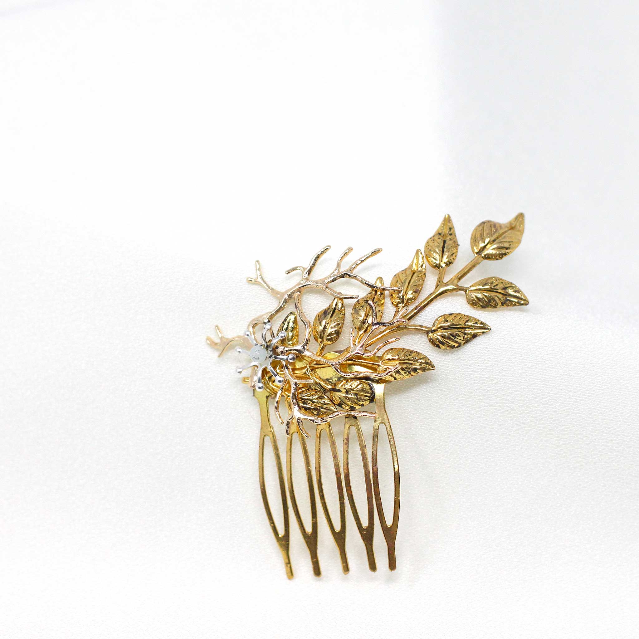 Peineta joya elaborada con piezas doradas con motivos naturales.