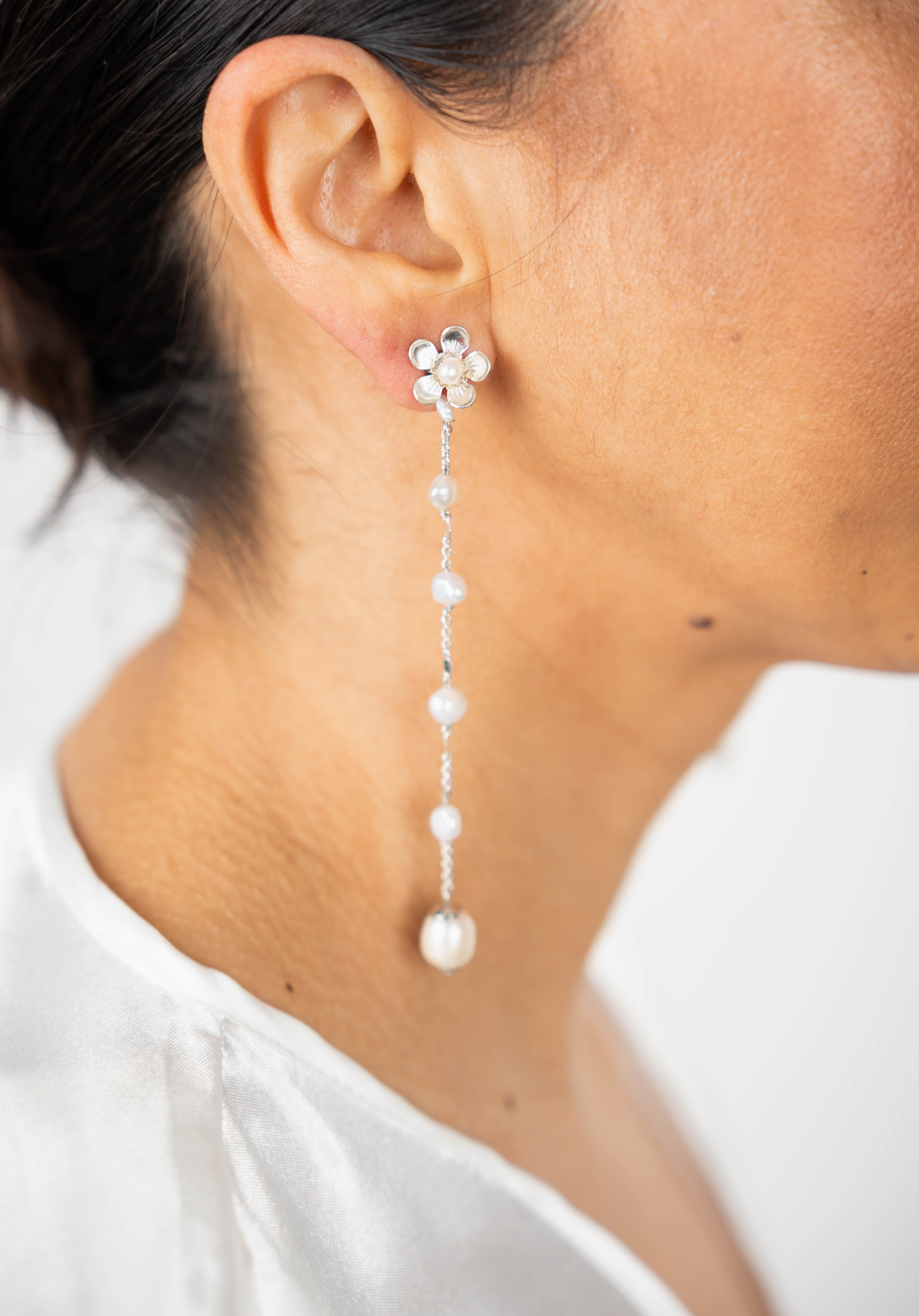 Delicadeza, movimiento y versatilidad se unen en nuestros pendientes largos con cadena y perlas de río intercaladas. Cada pieza está hecha a mano con atención al detalle, creando una joya fluida y elegante que aporta luz y sofisticación a cualquier conjunto.