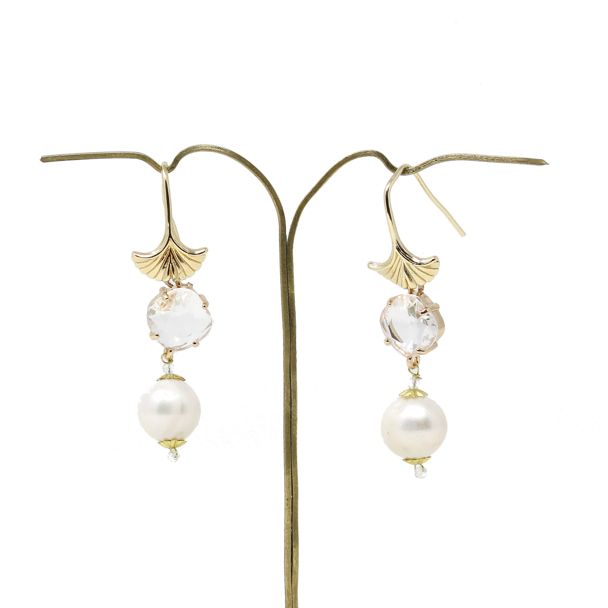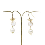 Pendientes grandes de cristal brillante y transparente y perla natural.