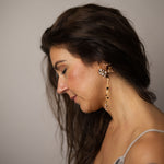 Los Pendientes Astrid son unos pendientes largos y colgantes, elaborados a mano con piezas joya, pensados para aportar luz, movimiento y elegancia en ocasiones especiales.