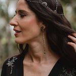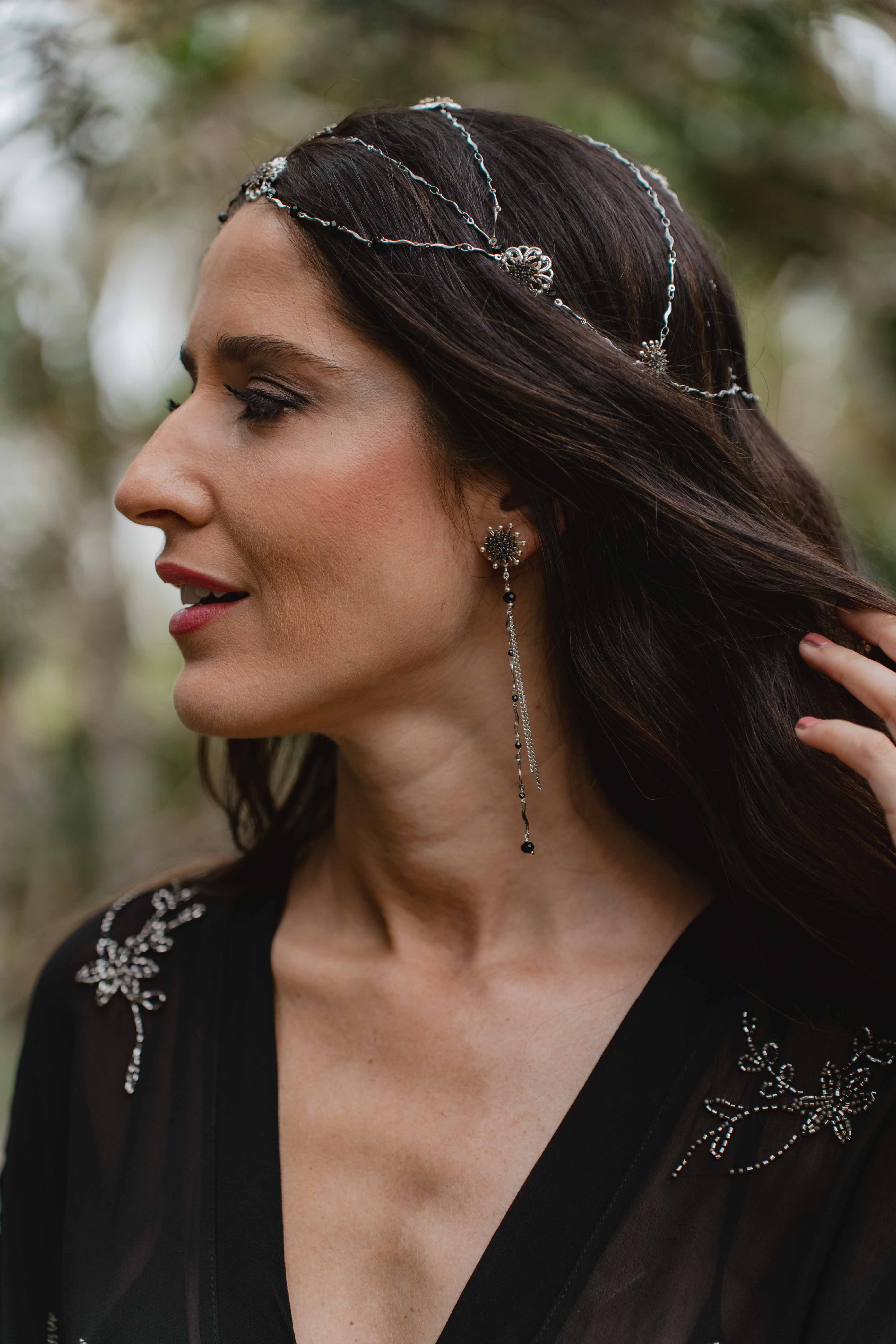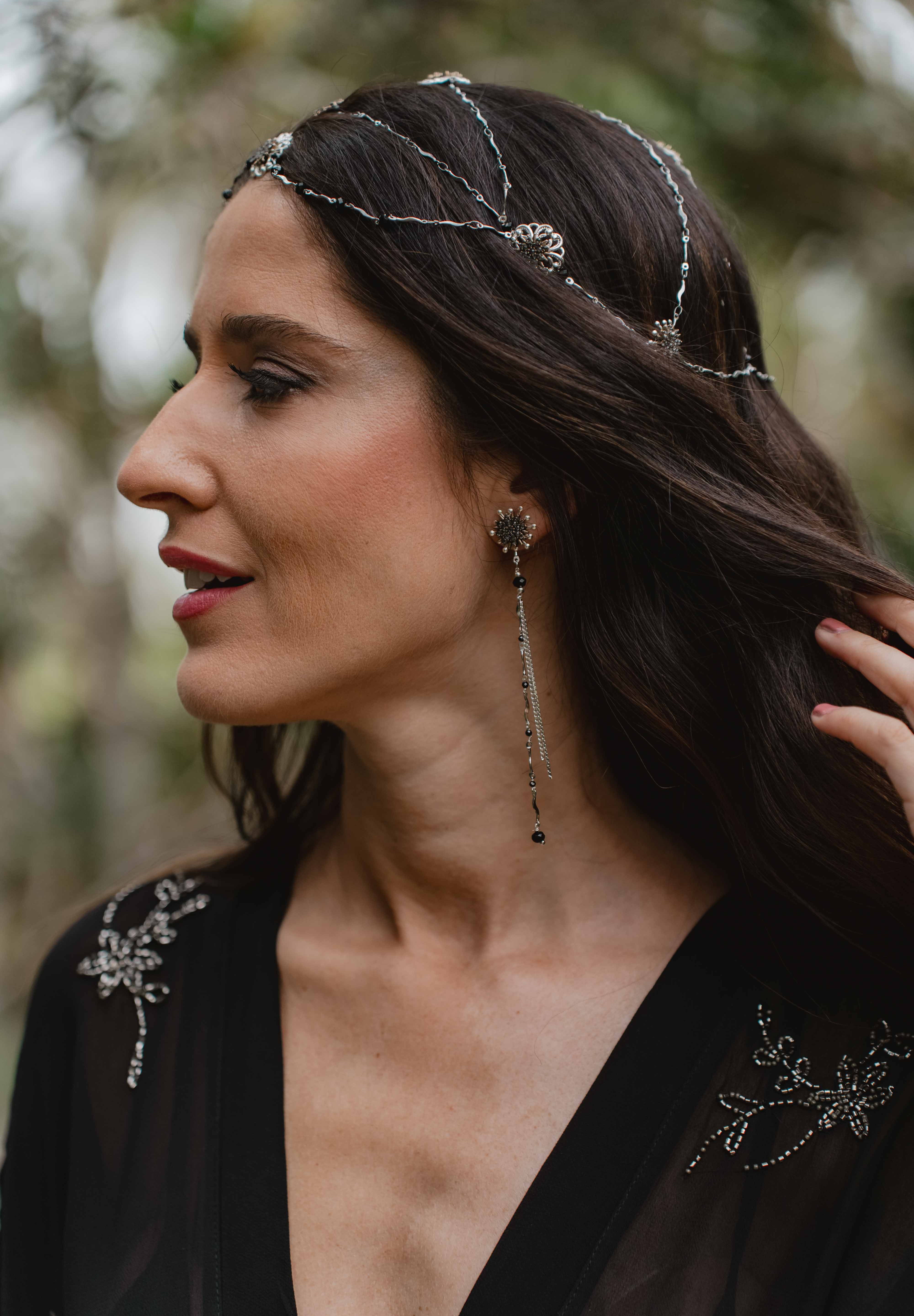 Los pendientes desmontables “Cenit” son una pieza artesanal diseñada para completar el conjunto Cala con el tocado joya tipo casquete del mismo nombre.