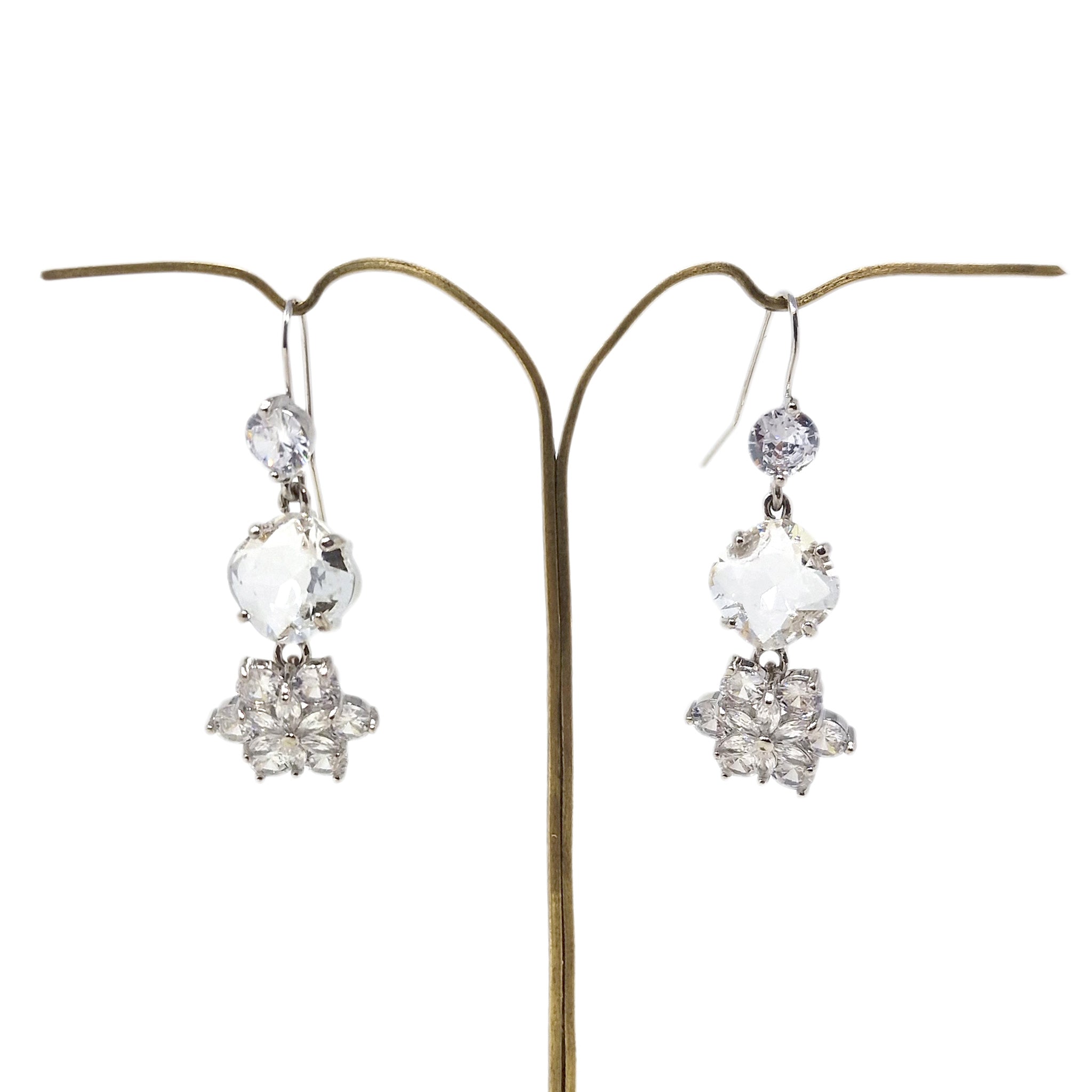 Pendientes compuesto de brillante en la parte superior, centro traslucido y rosa de brillantes.