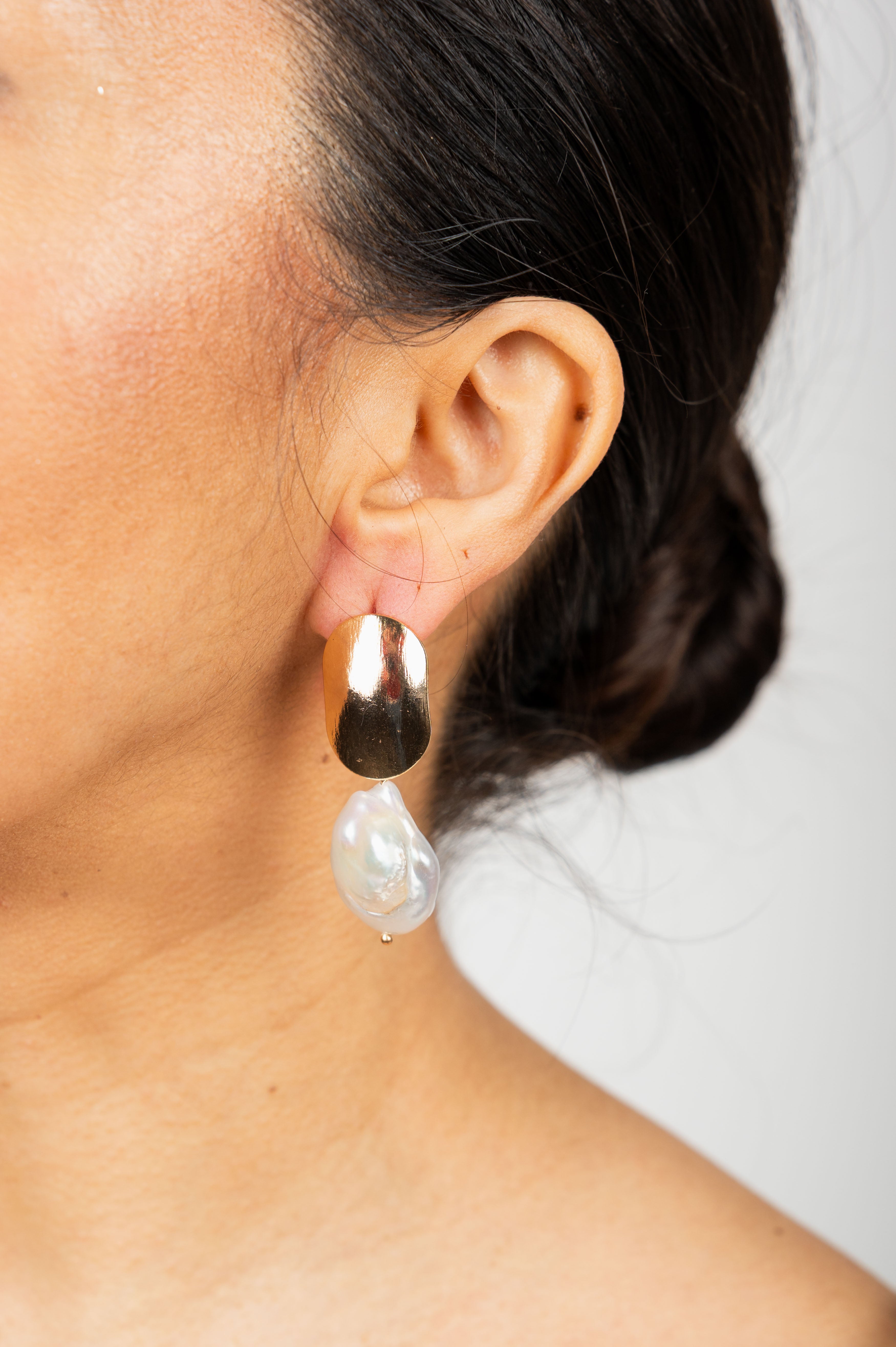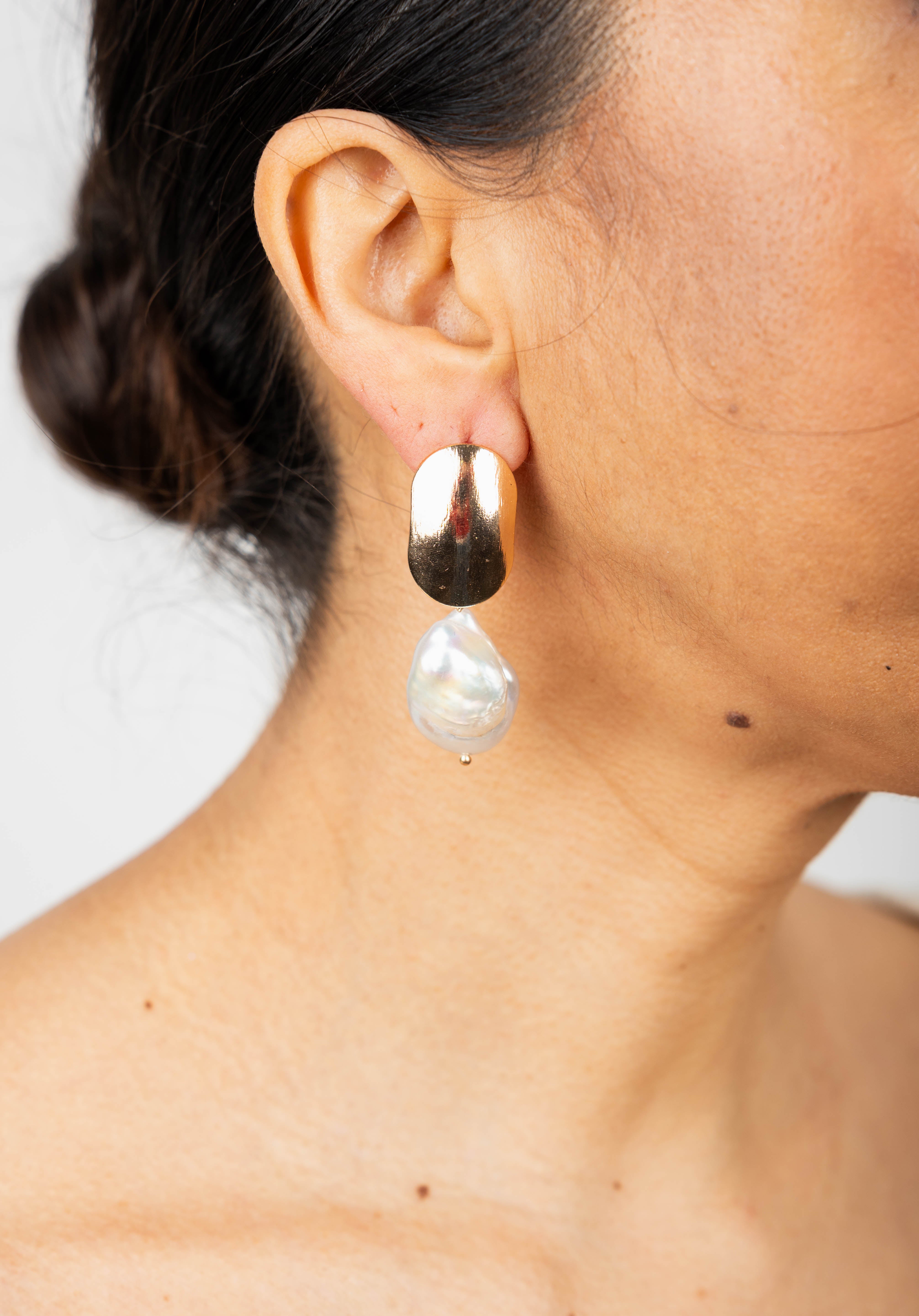 La protagonista de este diseño es una perla de río barroca natural, seleccionada por su forma orgánica e irrepetible. Cada perla es distinta, lo que convierte a cada par de pendientes en una pieza verdaderamente exclusiva.