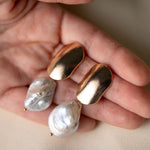 Pendientes largos con perla barroca y detalle dorado – Joyería artesanal elegante