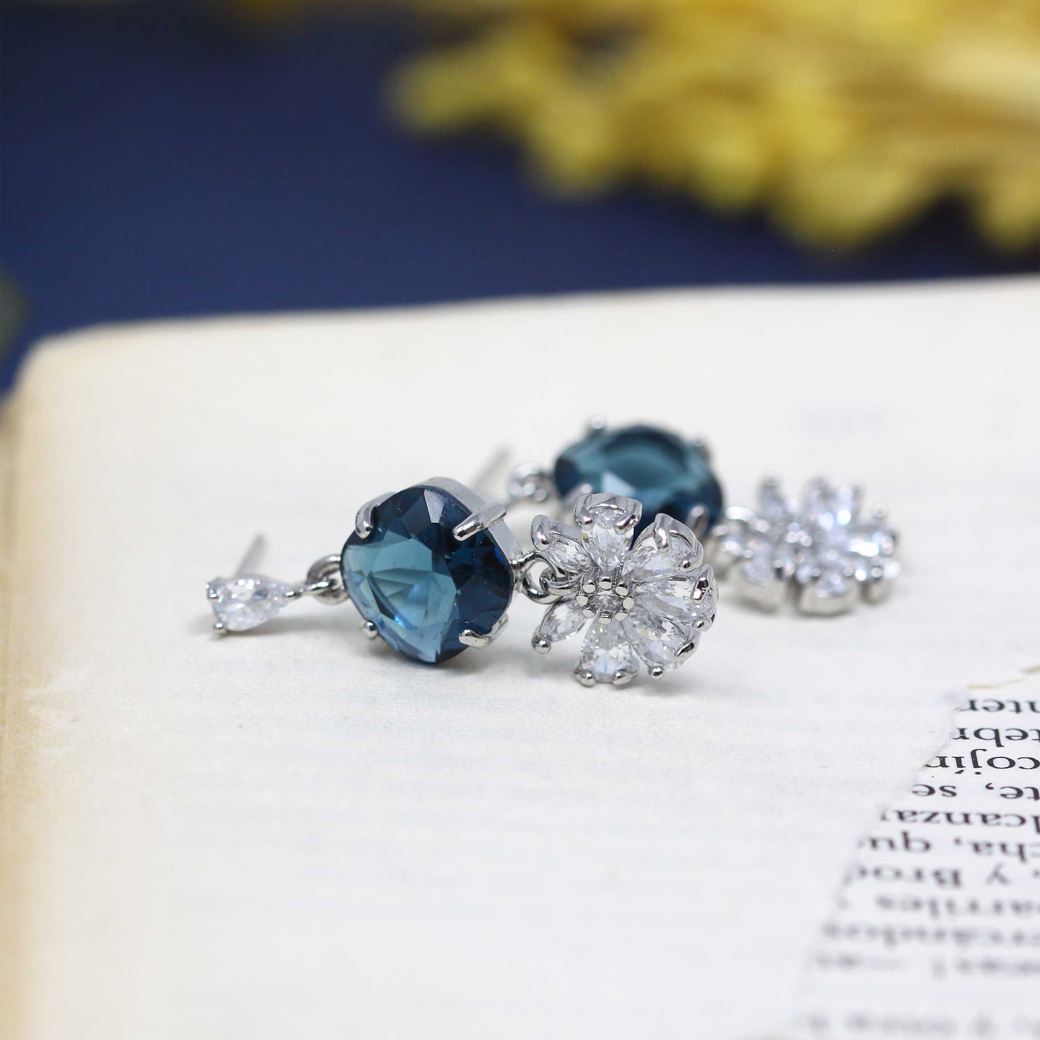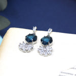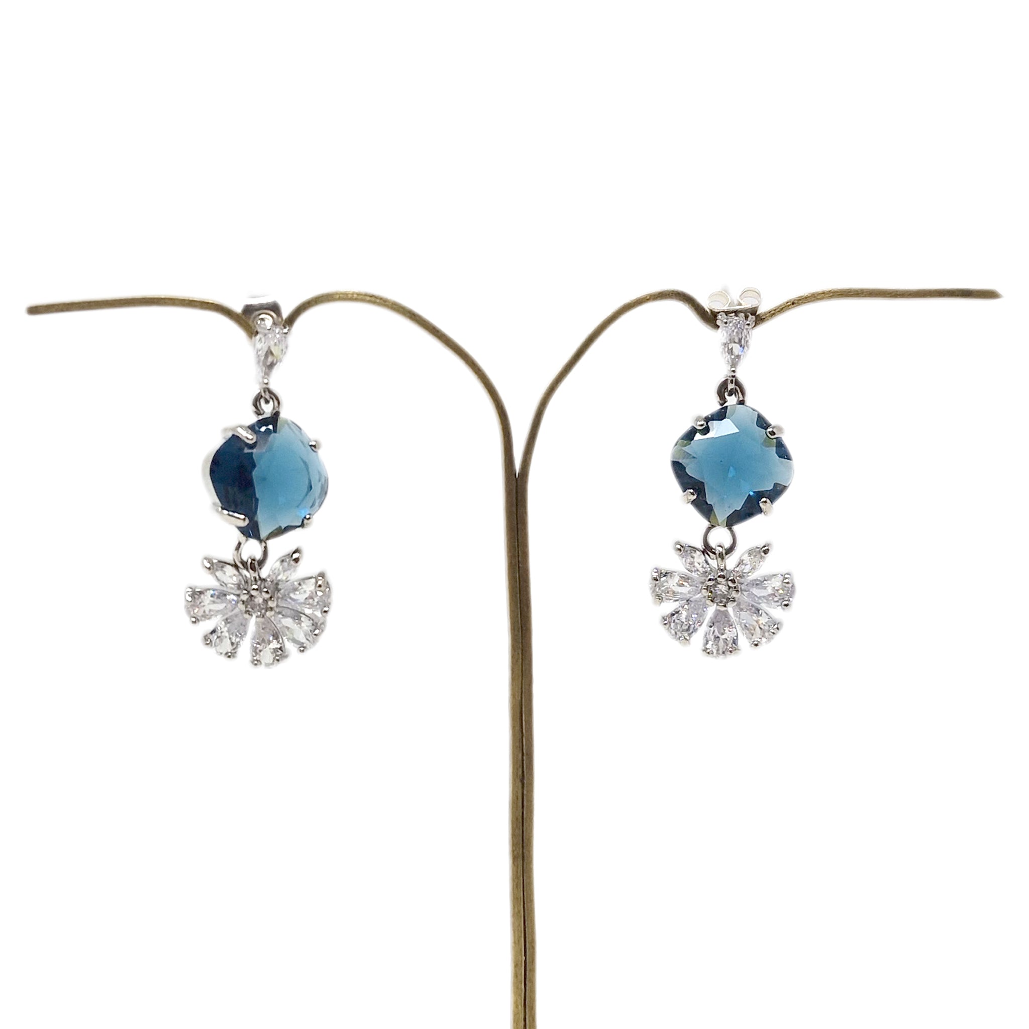 Como base en el lobulo, encontrarás un deslumbrante cristal  que brilla ,atrapando la luz de manera deslumbrante. El cristal de color zafiro, majestuoso y enigmático, aporta un toque de misterio y profundidad a la composición.
