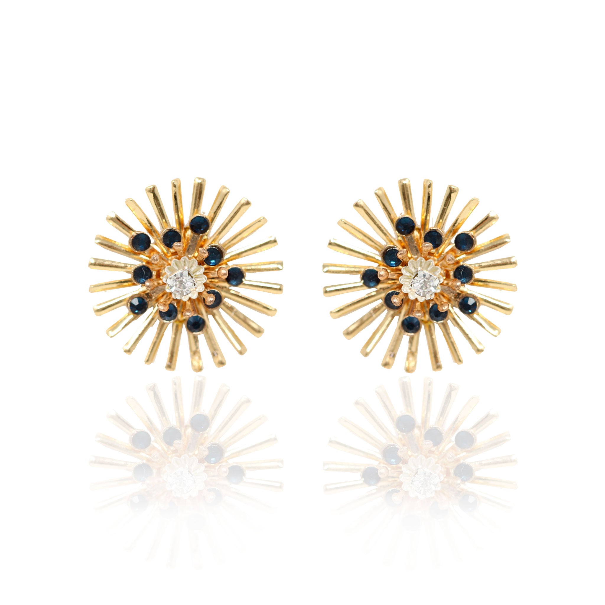 Pendientes joya elaborados a mano con piezas doradas esmaltadas y brillantitos tanto en su centro como alrededor.