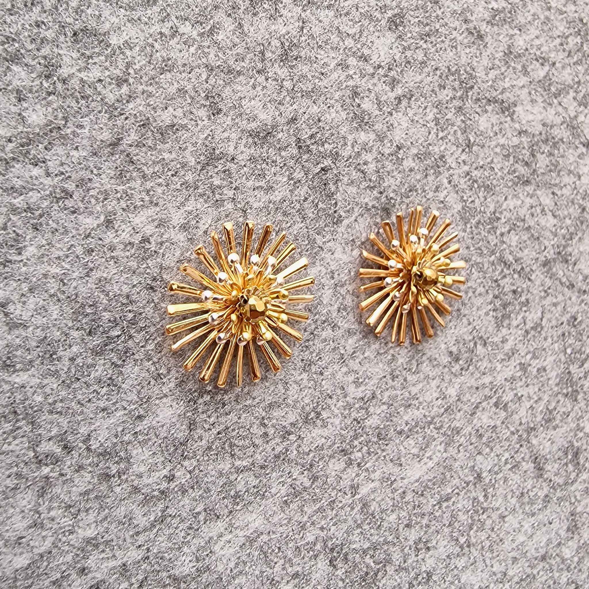 Pendientes joya elaborados a mano con piezas doradas esmaltadas y brillantitos.