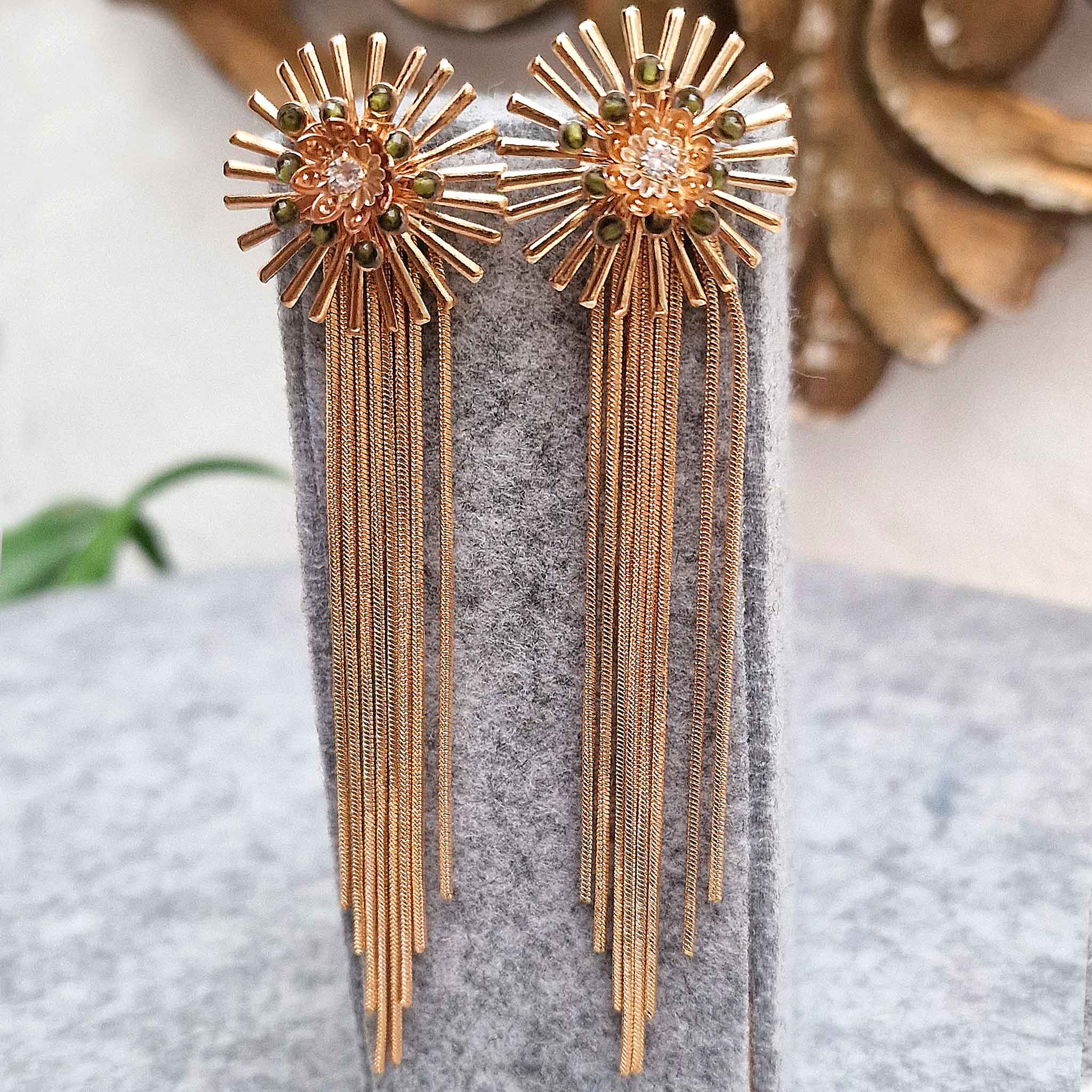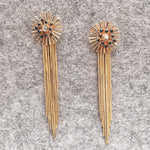 Descubre la sofisticación única de nuestros Pendientes Joya, meticulosamente elaborados a mano con forma de sol y cadena larga para un toque de glamour incomparable.