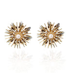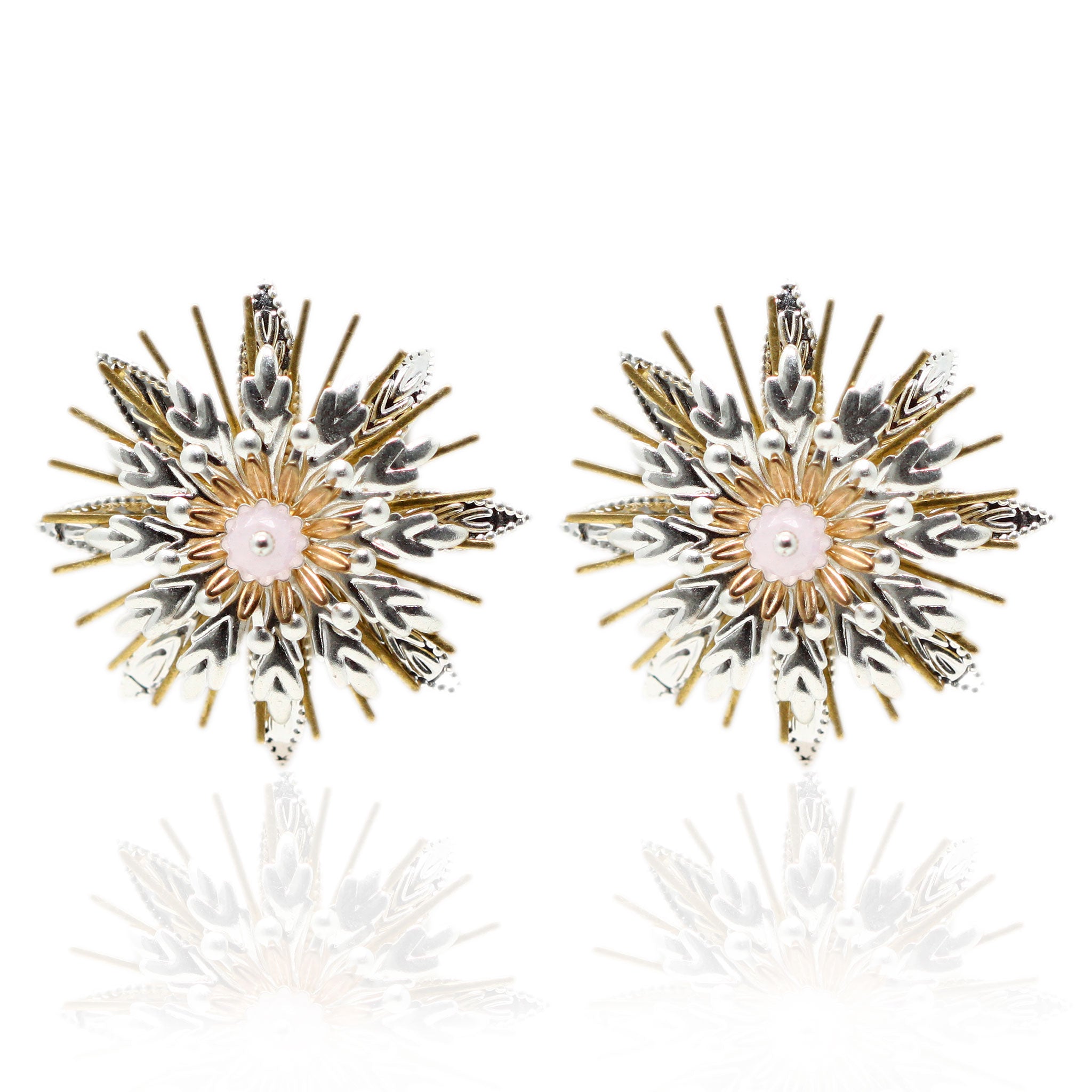 Pendientes joya elaborados a mano con piezas doradas y plateadas, con piedras semipreciosas y brillantitos.