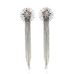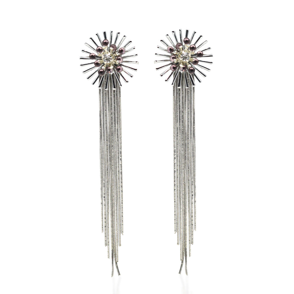 Pendientes joya elaborados a mano con piezas plateadas esmaltadas y piedrecitas de colores en su parte central y alrededores.