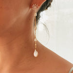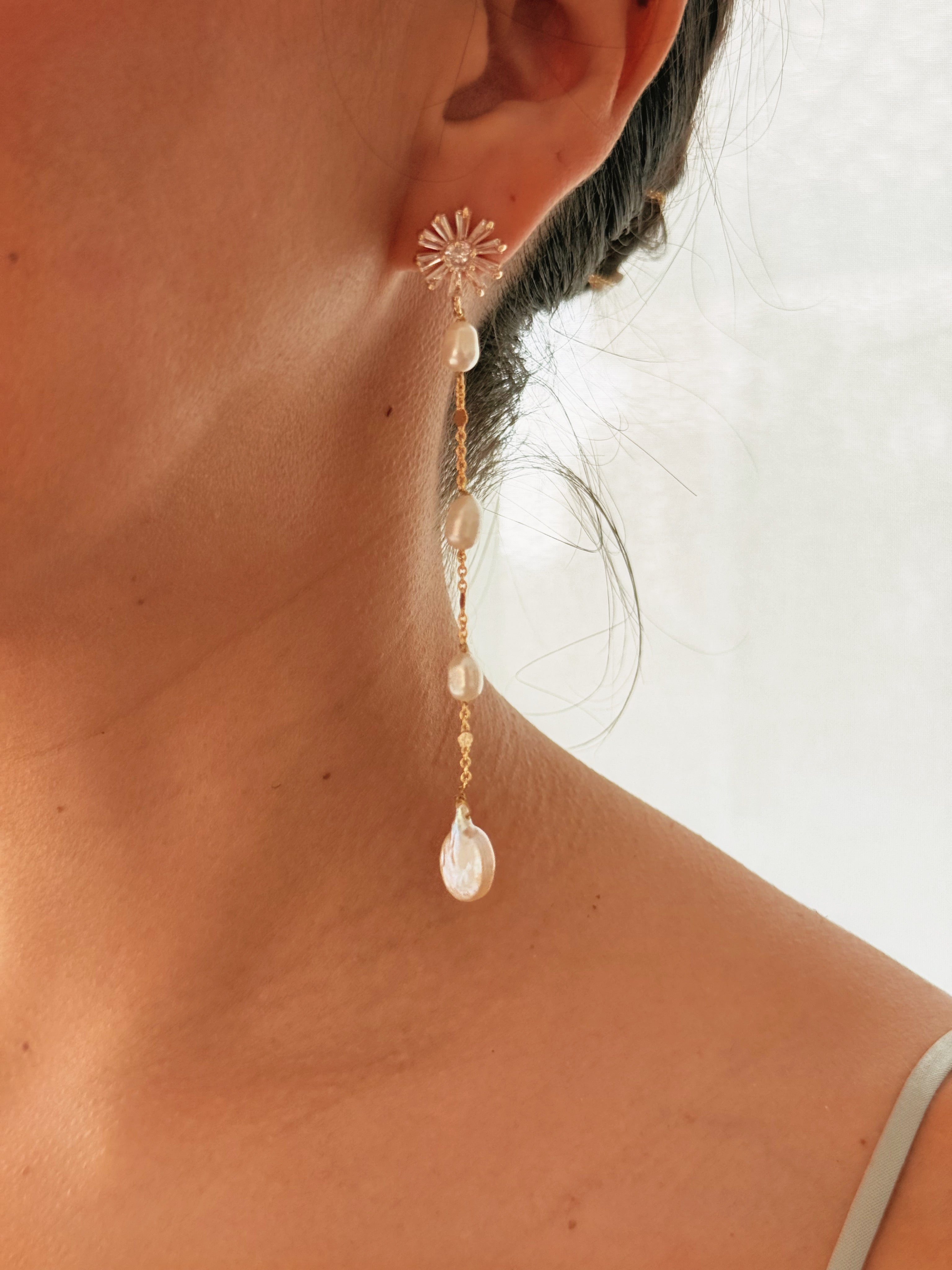Delicadeza, movimiento y versatilidad se unen en nuestros pendientes largos con cadena y perlas de río intercaladas. Cada pieza está hecha a mano con atención al detalle, creando una joya fluida y elegante que aporta luz y sofisticación a cualquier conjunto.