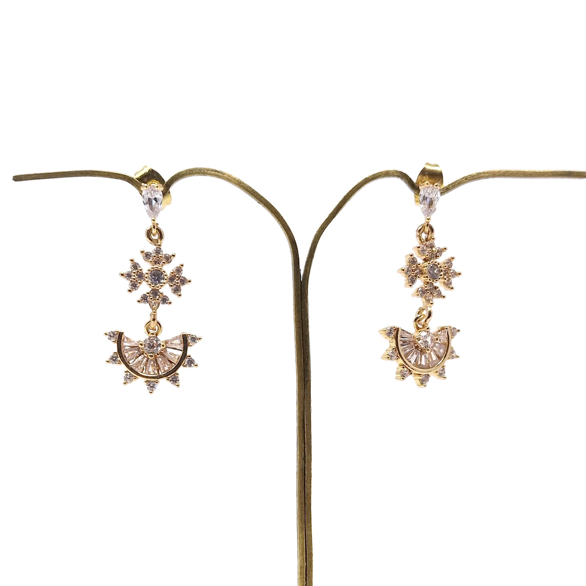 Pendientes barrocos compuestos de un brillante, una cruz barroca central y rosetón de brillantitos.