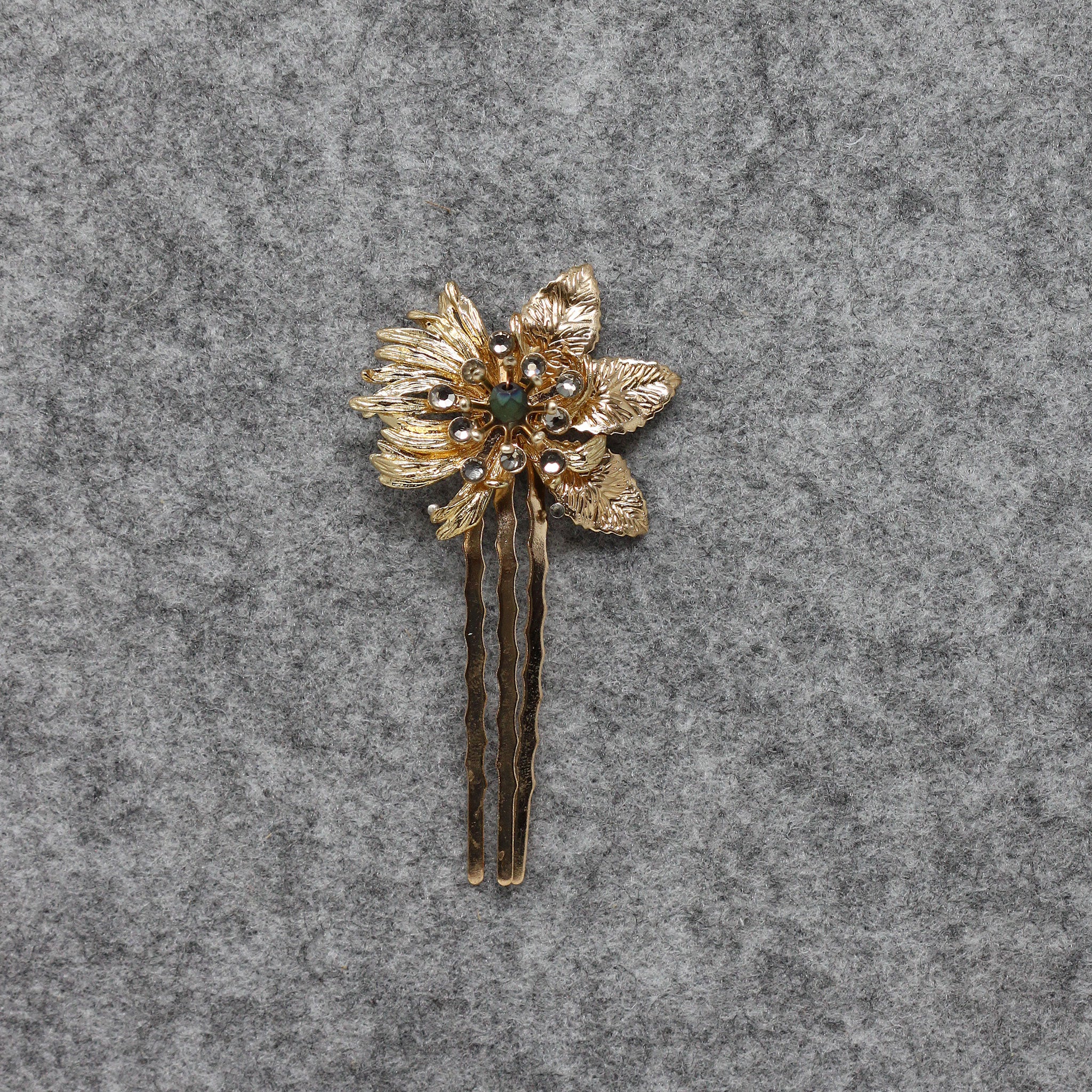 Peinas decoradas con piezas joya en forma de flor, con detalles en perlitas y brillantes.