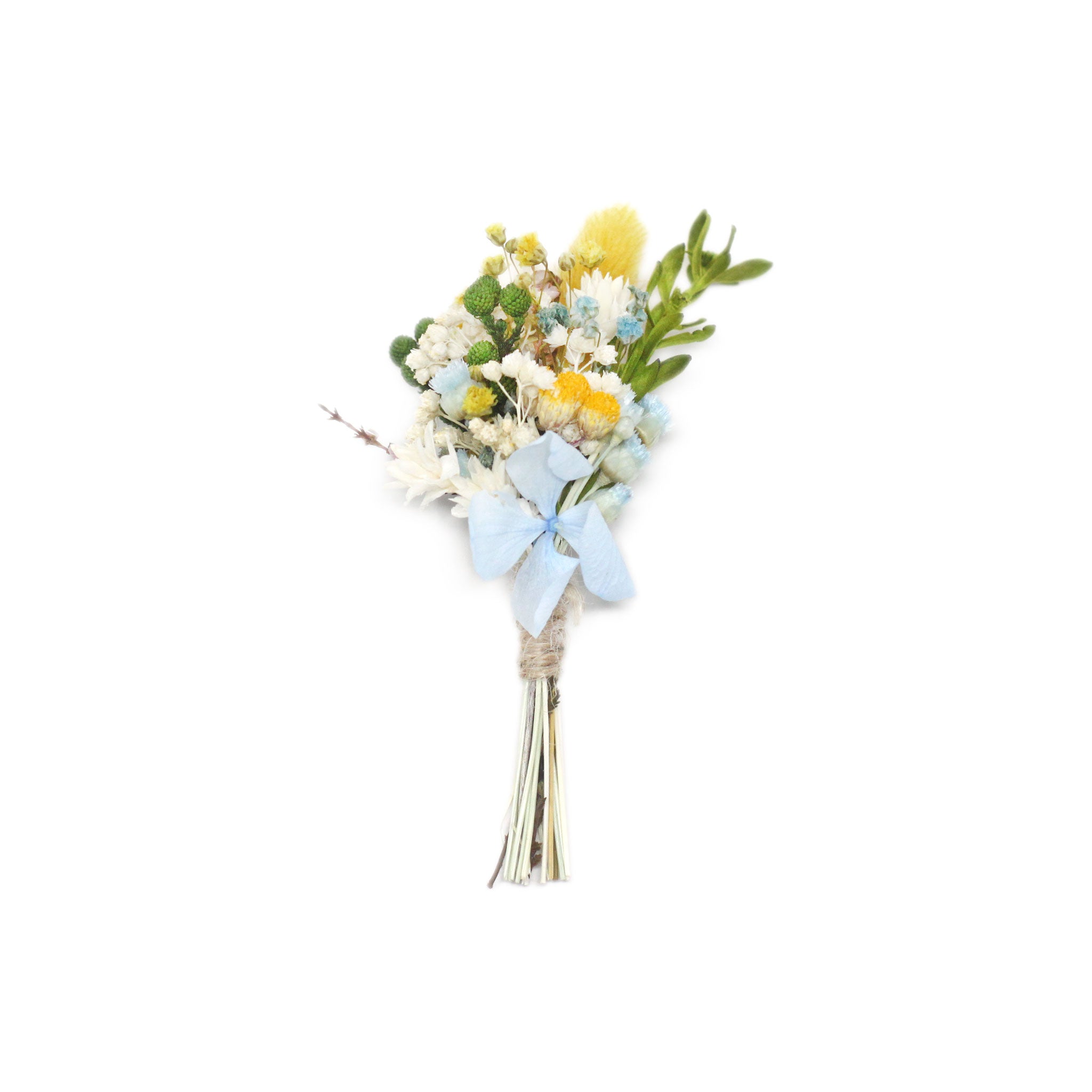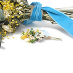 Prendido para novios de flores naturales preservadas elaborada a mano.