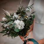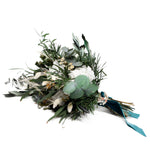 Precioso ramo clásico elaborado con una gran variedad de flores y hojas naturales preservadas como el eucaliptus, las flores de arroz, hortensias, mini margaritas, paniculata y flores de trigo.