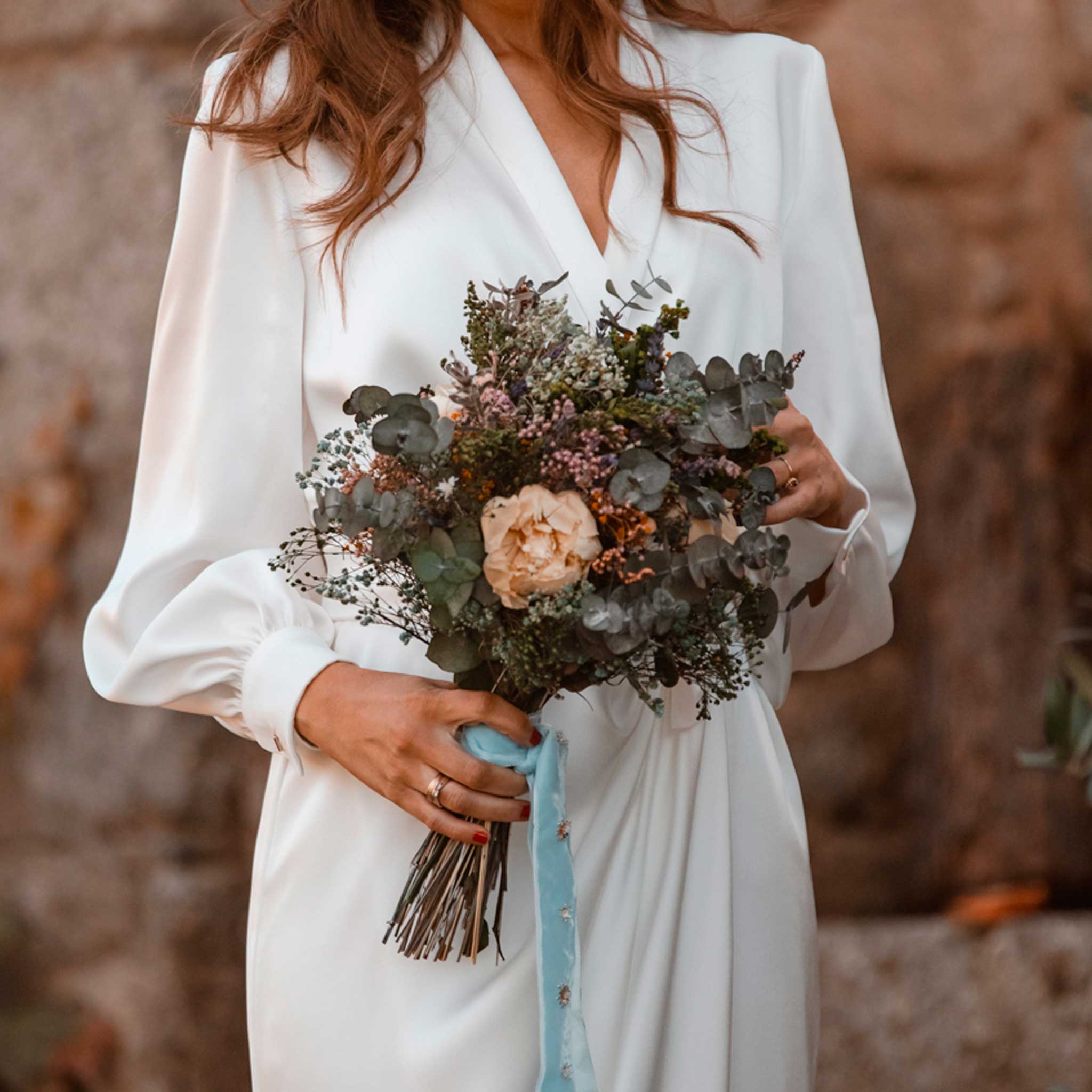 Nuestros ramos también se pueden personalizar totalmente a tu gusto, ¡incluso lo podemos hacer a juego con tu tocado!